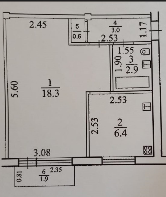 ПАРАМЕТРЫ: площадь общая-33/31,2 м2, жилая-18,3 м2, КУХНЯ-6,4 м2, балкон застеклен.