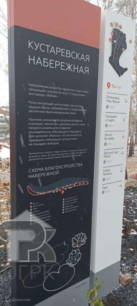 Хорошая транспортная доступность, можно доехать до любого места в городе: до Зеленой рощи, центра города, Зорге, ГДК, Уфимского ДОКа, Сипайлово, Черниковки. Живописный район со всеми необходимыми коммуникациями для жизни, с обилием зеленых насаждений, c зонами для пикников и пространствами для выставок и инсталляций. В оформлении спортивных и детских площадок прослеживаются элементы современного искусства.