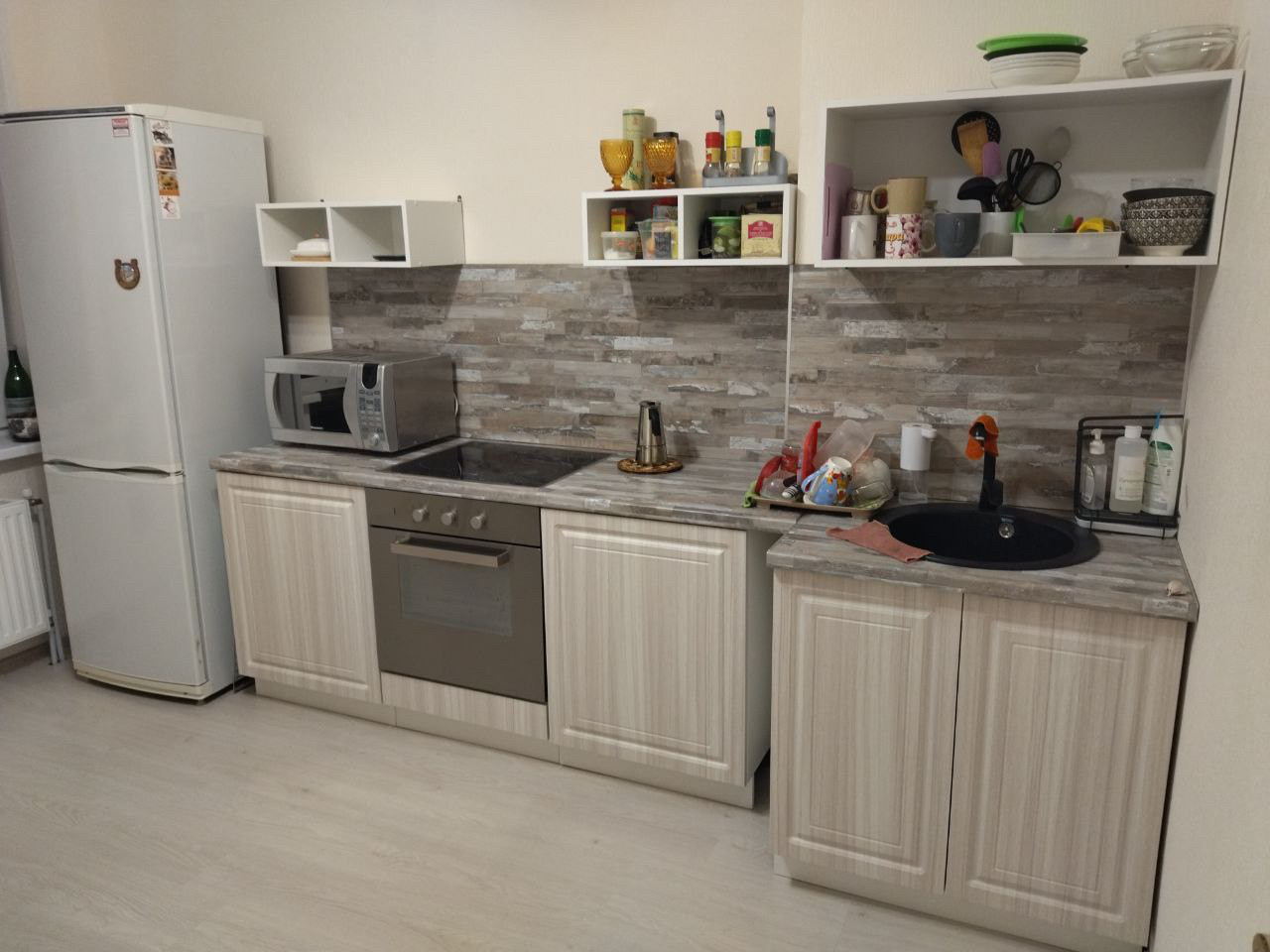 —Кухонный гарнитур с техникой.