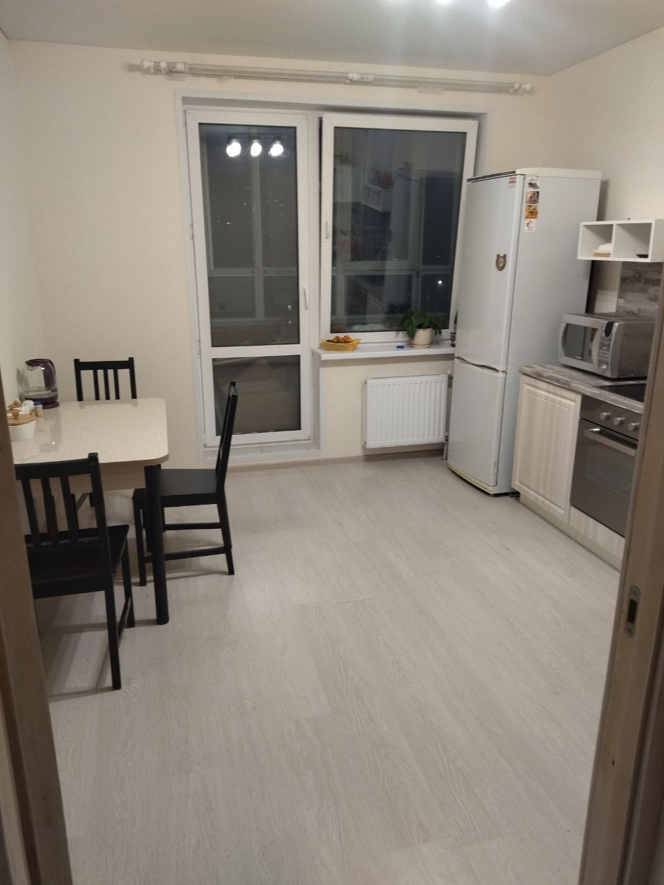 — Пластиковые окна, на полу ламинат, обои под покраску, балкон с кухни – застекленный.