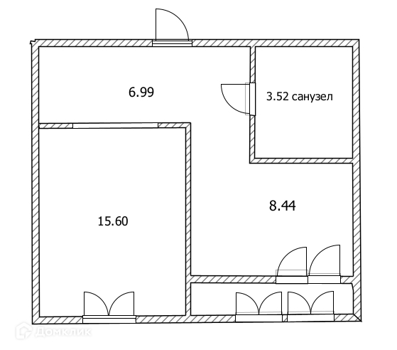 Жилая площадь 15.6 м2