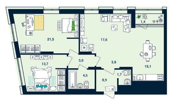Общая площадь 87.2 м2