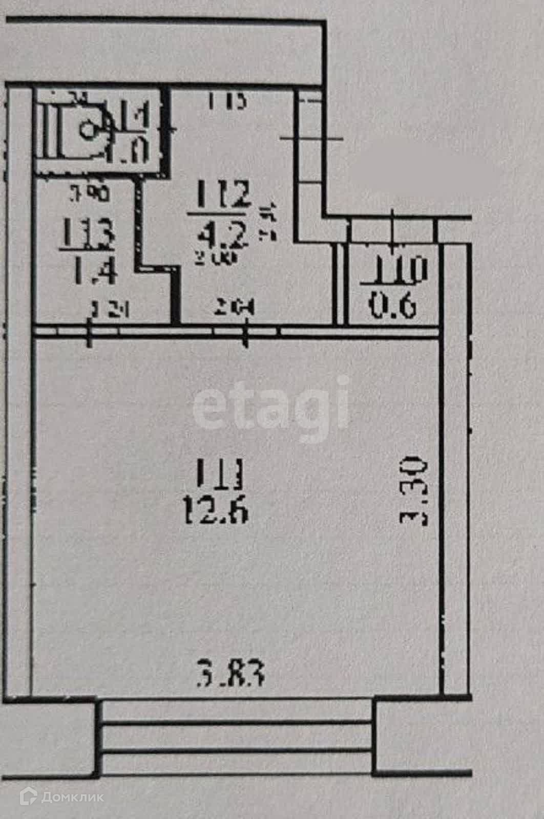 1. Общая площадь - 19.8 кв.м., жилая - 12.6 кв.м;