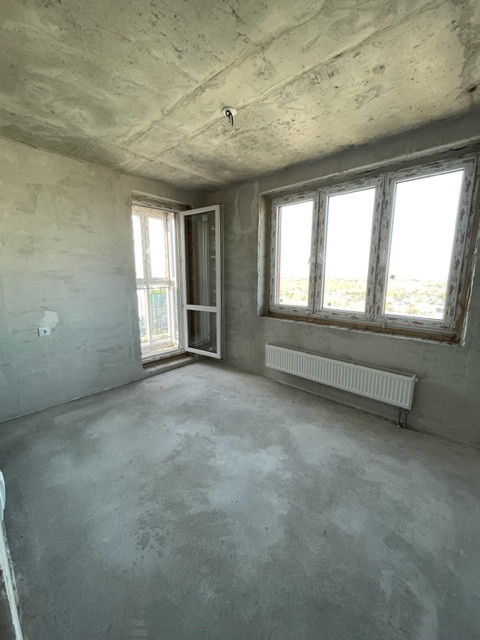 Высота потолка 2,5кв.м ; пол и стены выровнены по маячкам, проведена электрическая разводка, санузел совмещенный, счетчики ХВС и ГВС, радиаторы отопления.