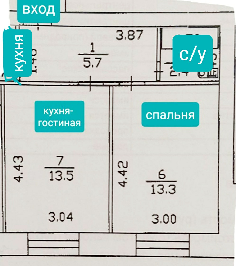 Общая площадь 34 м2