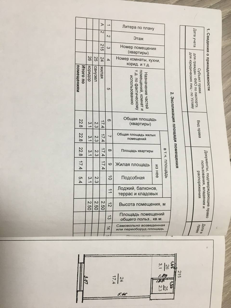 Общая площадь 22.8 м2