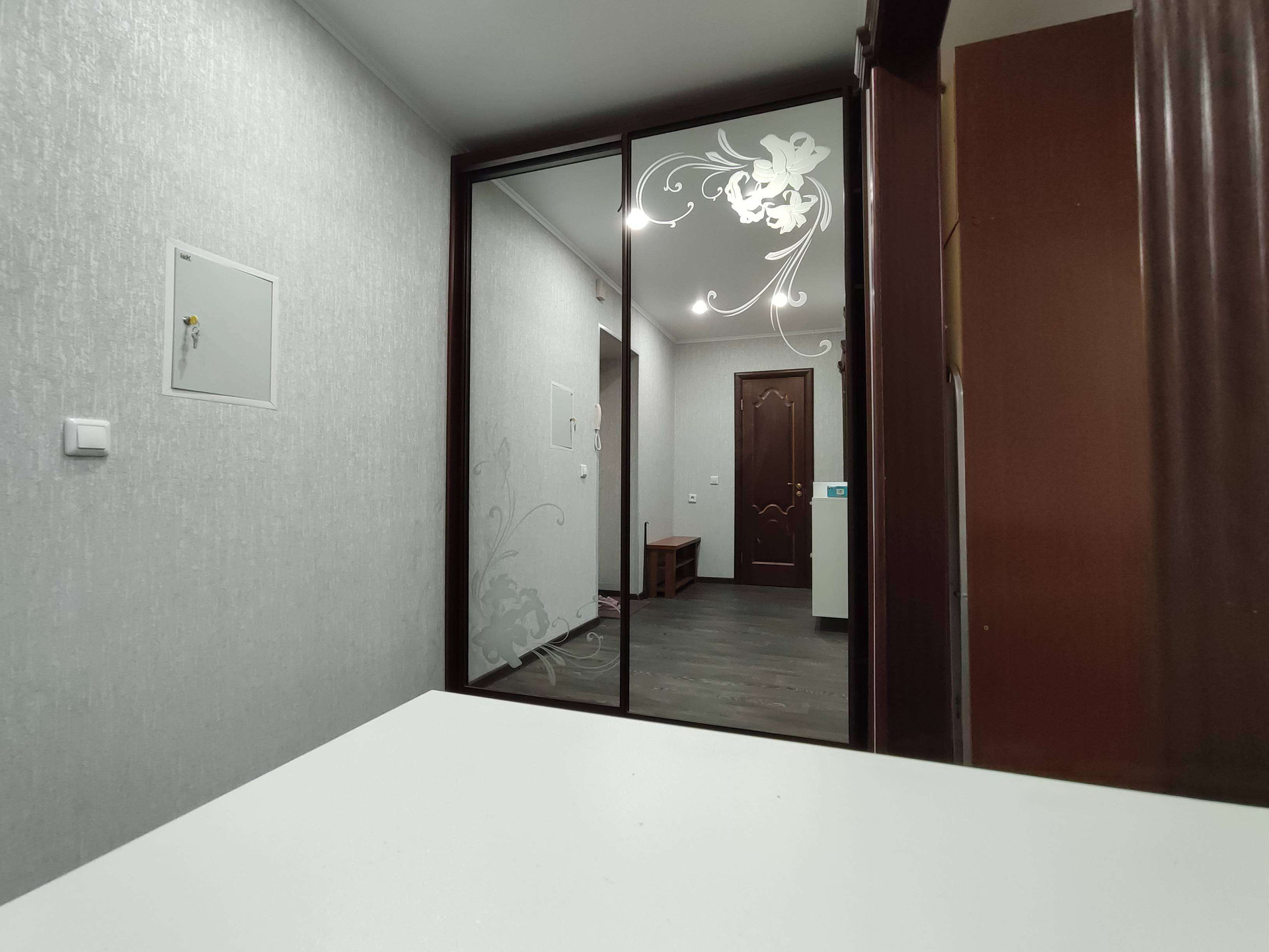 Остаётся всё: кухонный гарнитур со встроенной техникой, холодильник, микроволновая печь, стиральная машина, стенка и диван в комнате, встроенный шкаф-купе. Все люстры.