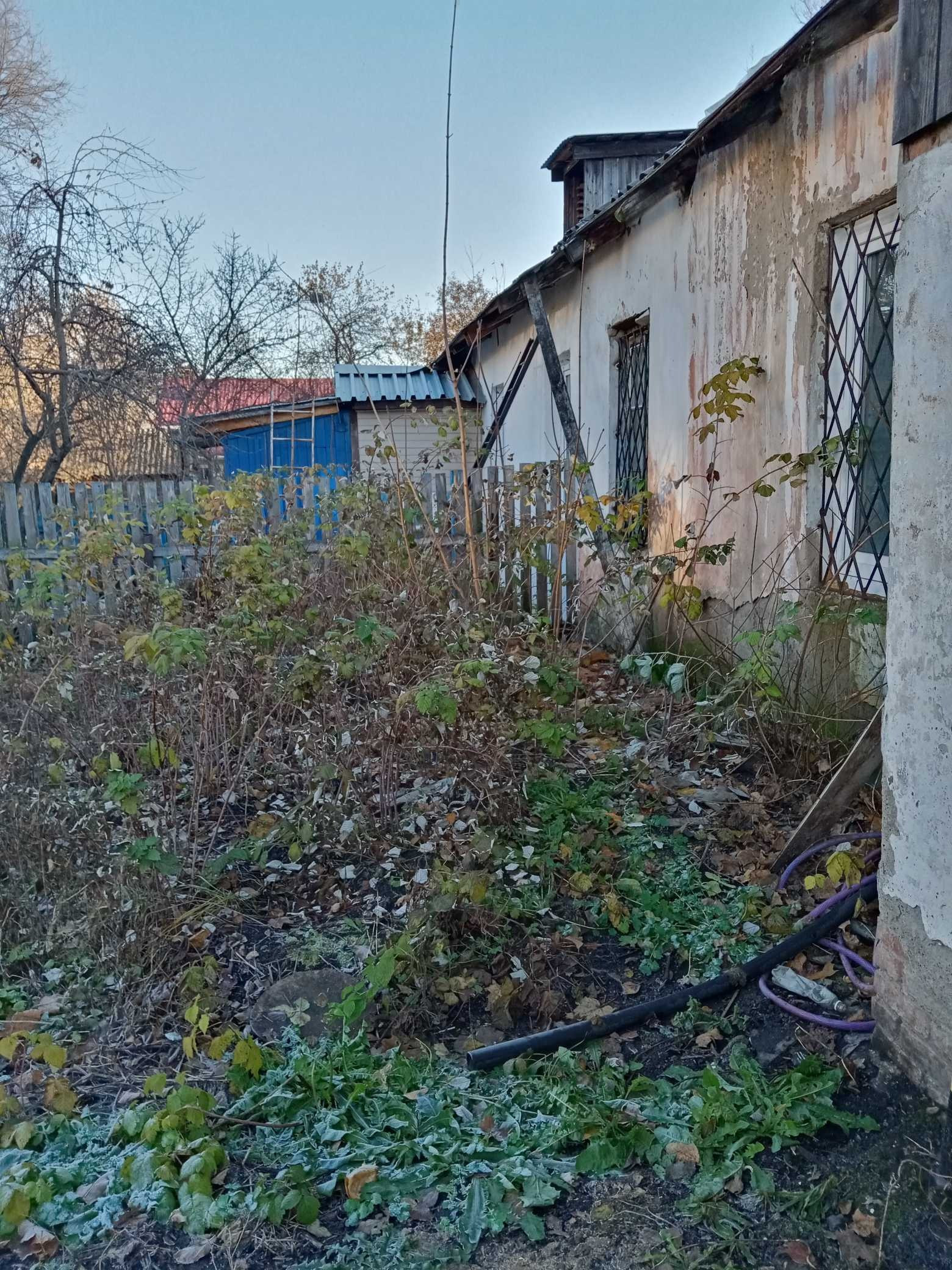 Дом на четырёх хозяев с отдельным входом со двора. Небольшой земельный участок. Центральное отопление, вода, газ. Канализации нет. Санузел отсутствует.