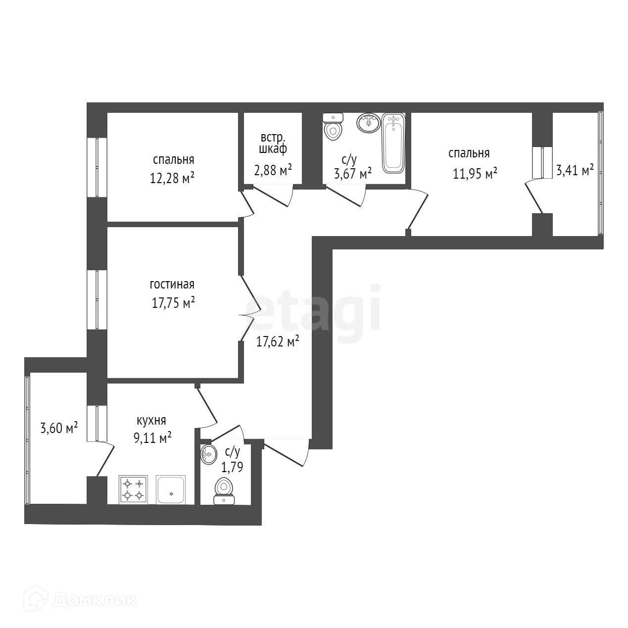 Общая площадь 77.9 м2