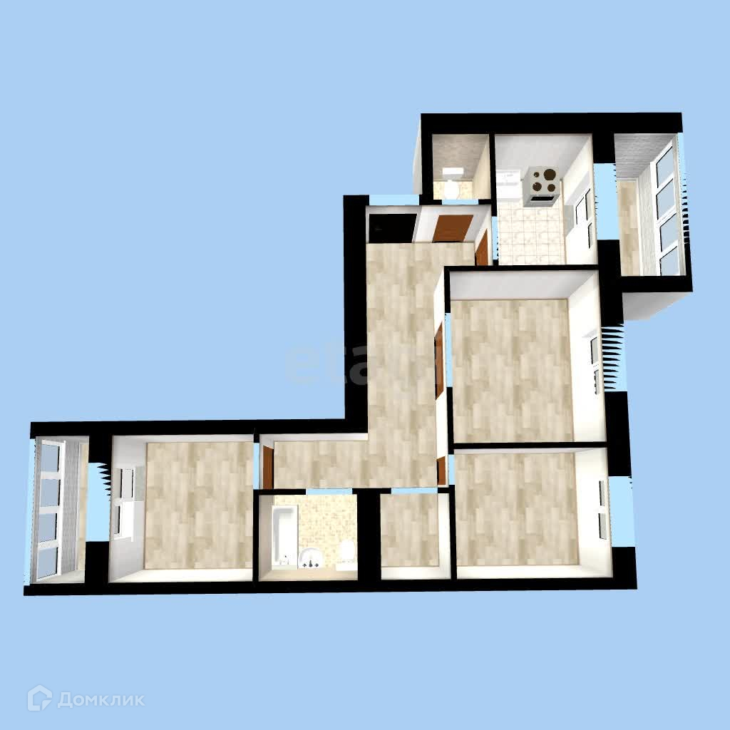 3-комнатная квартира, 77.9 м2, этаж 8 / 17, на продажу в Уфе, улица Лётчиков, 2/5