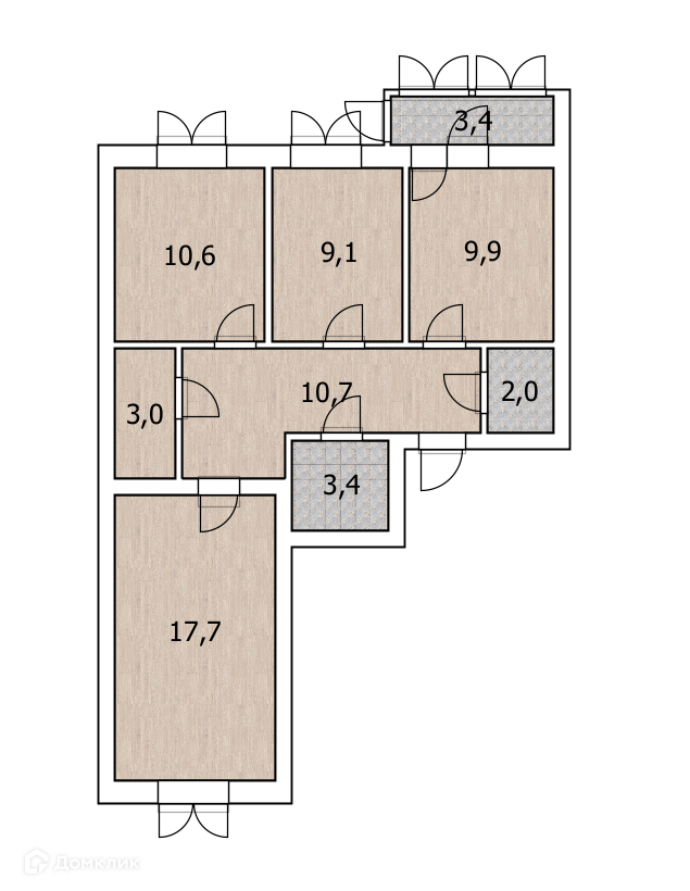 Площадь кухни 9.9 м2