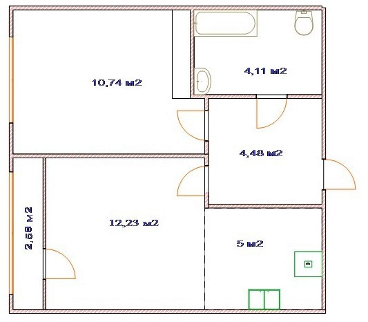 Площадь кухни 5 м2