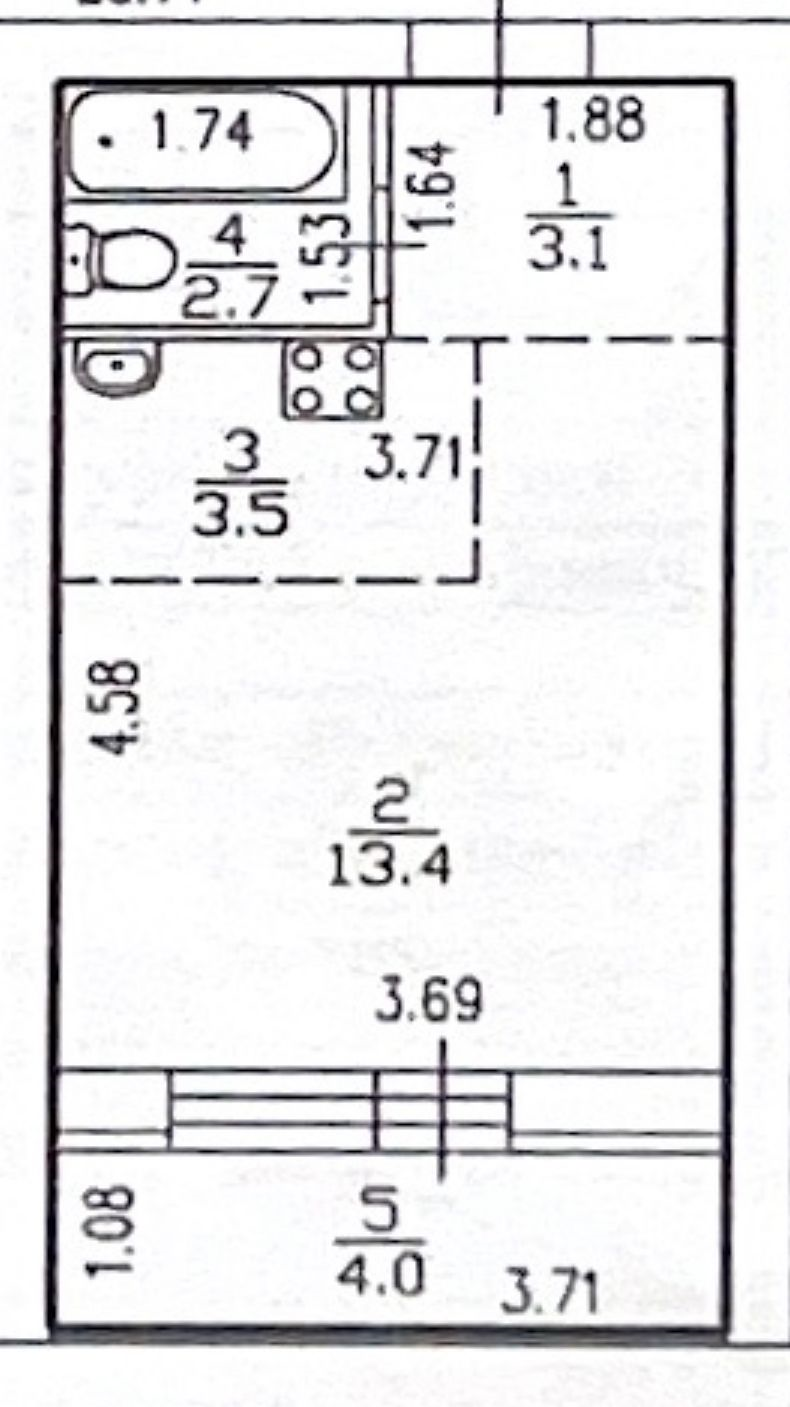 Общая площадь квартиры 26,7 кв.м.; жилая 13,4 кв.м.; кухонная зона 3,5 кв.м, высота потолков 2,5 метра, установлены пластиковые окна, лоджия обшита евровагонкой.