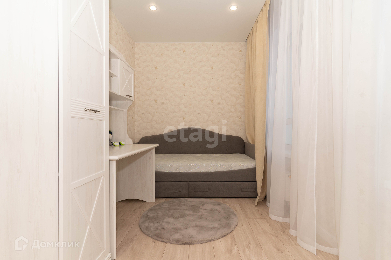 Во всех комнатах имеются шкафы, удобные кровати с ортопедической ламелью, шторы блек-аут из замши, тюль. В прихожей большой вместительный шкаф. В санузеле на стенах керамогранит под мрамор, акриловая ванна, инсталляция, зеркало с подсветкой, навесная тумба с раковиной. Стиральная машина в постирочной. Идеальное цветовое решение, все в сдержанных тонах, квартира очень уютная и светлая.
