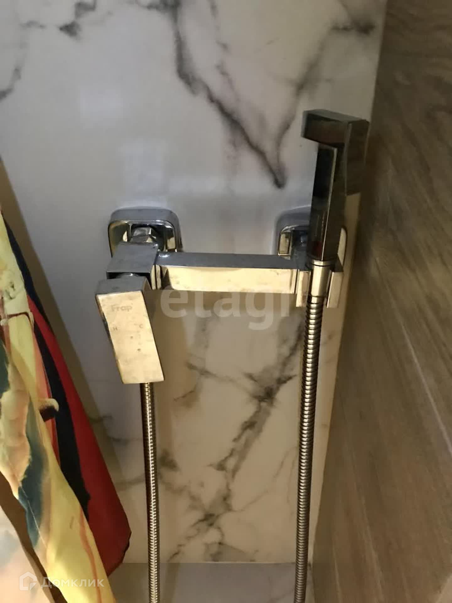 В ванной комнате поверхность натуральный керамогранит цвет мрамор, гарнитур качественный в одном стиле.
