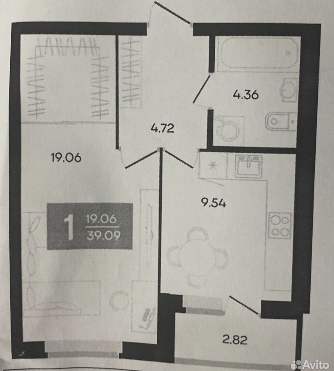 Общая площадь 39.1 м2