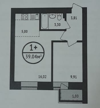 Общая площадь 39 м2
