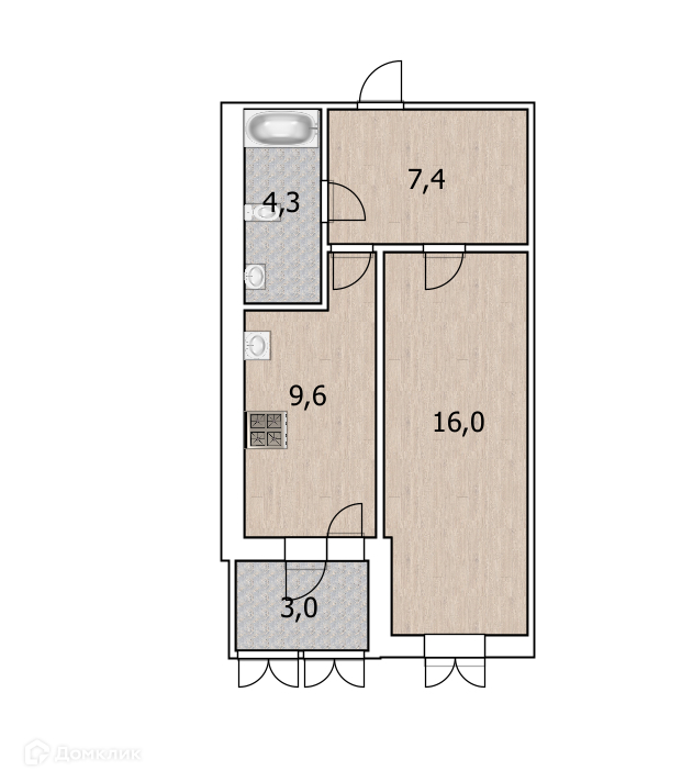 Балкон, лоджия 1 балкон