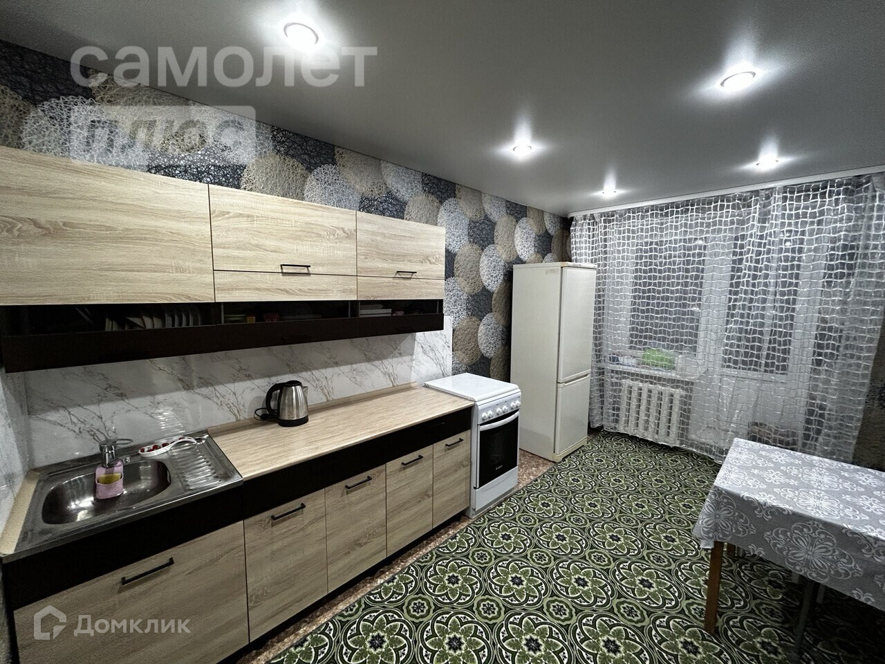 Сделан свежий ремонт: натяжные потолки, виниловые обои. Остается кухонный гарнитур и встроенный шкаф.