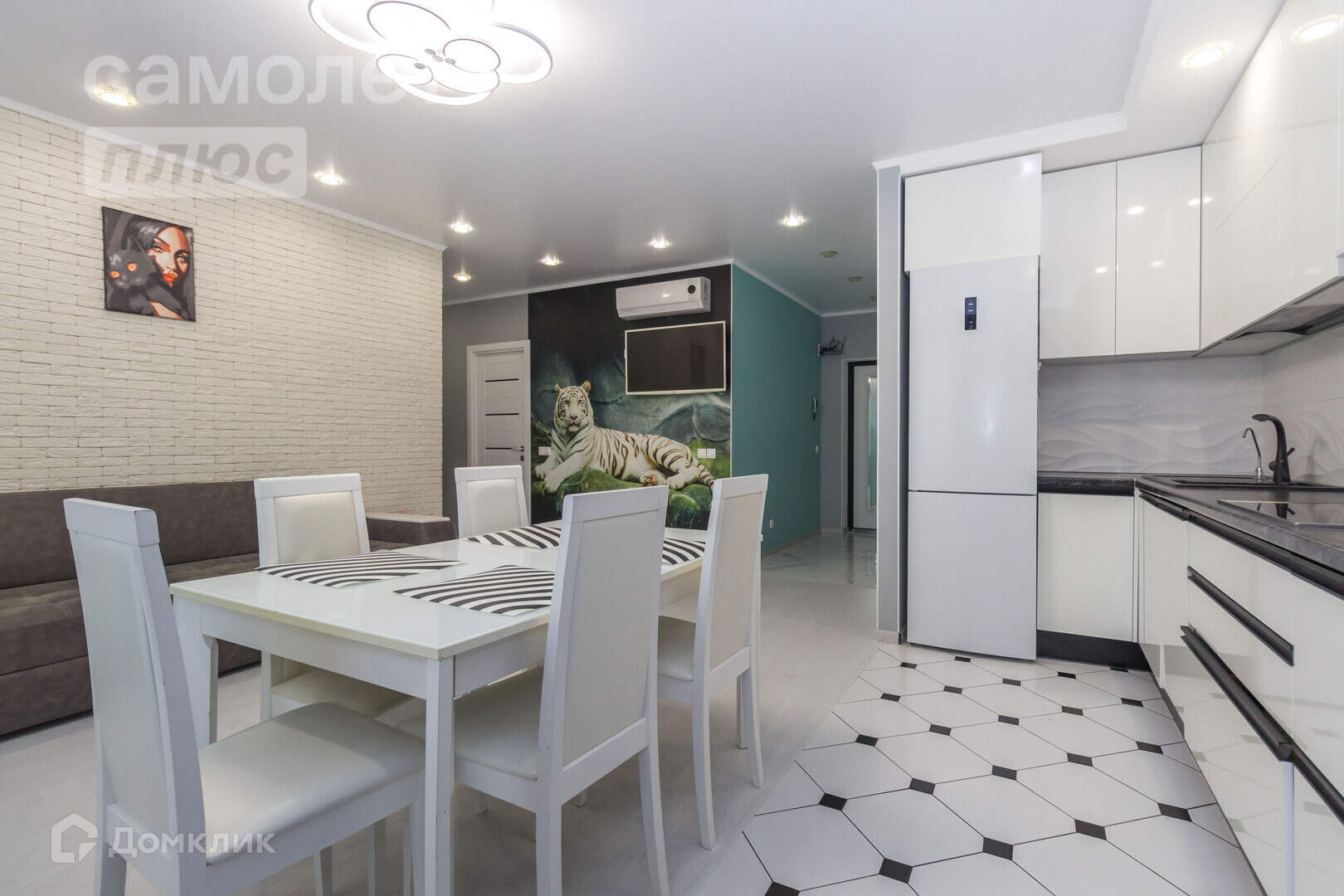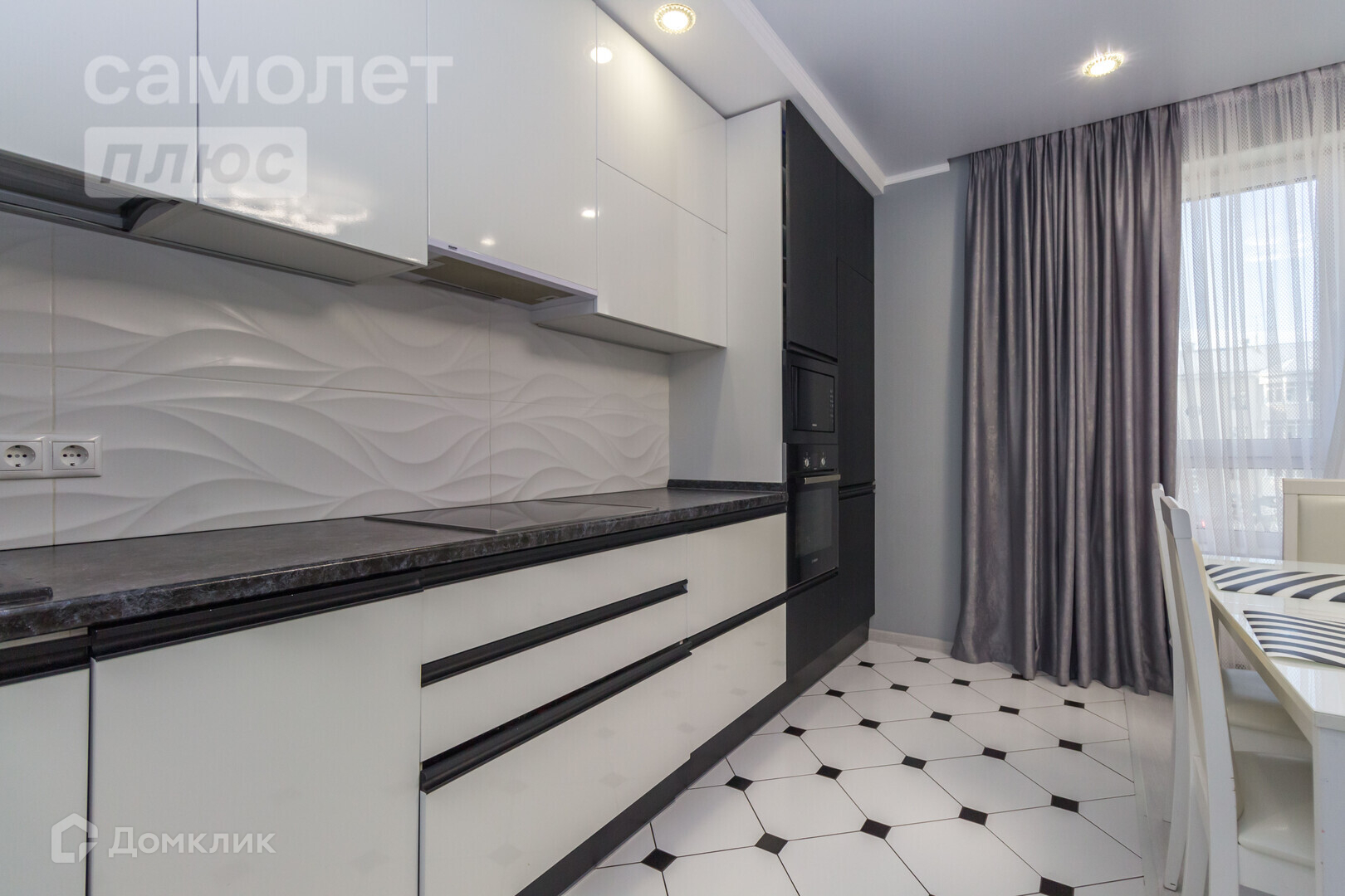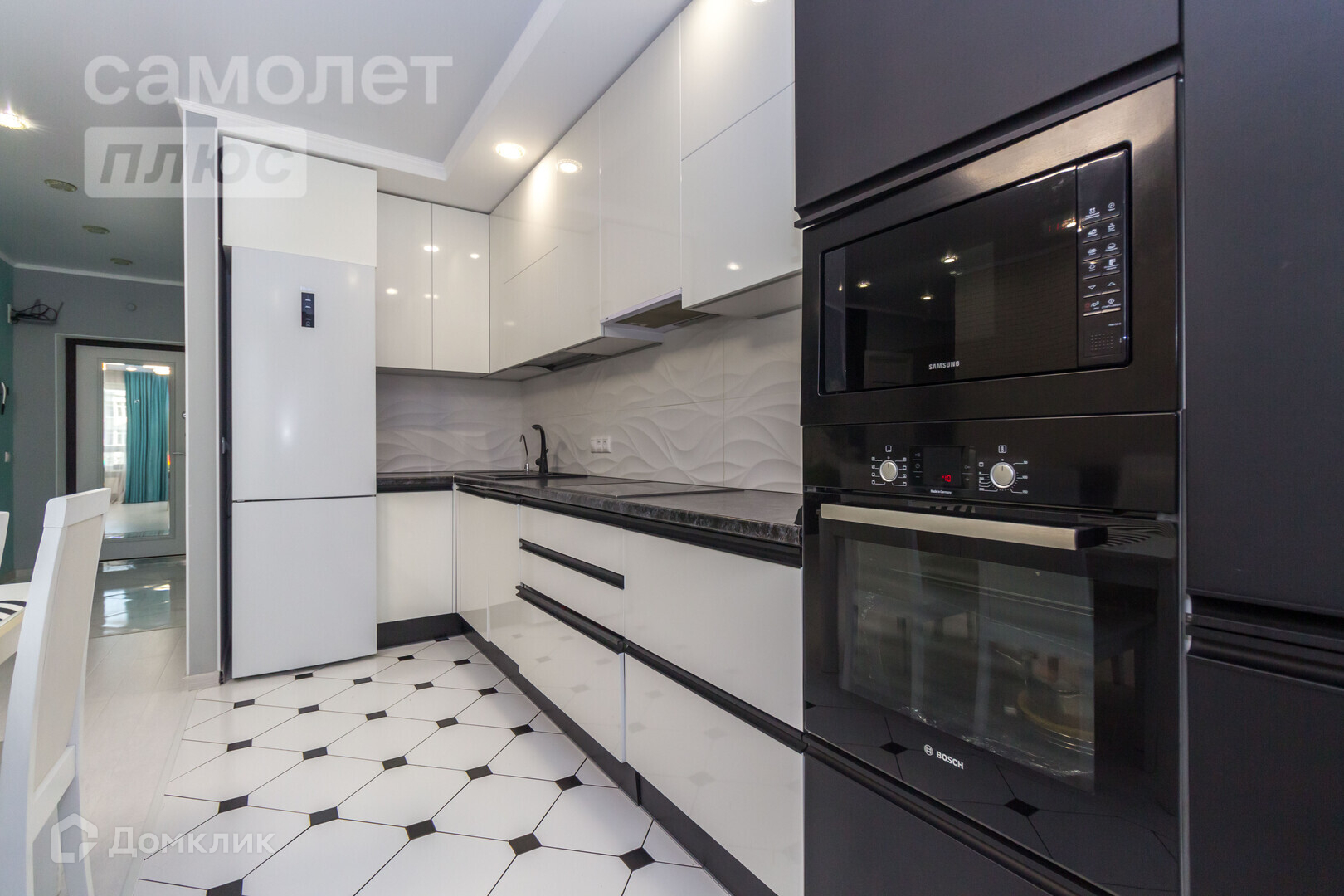 Кухонный гарнитур, встроенная бытовая техника (вытяжка, варочная поверхность, духовой шкаф, холодильник, посудомоечная машина).