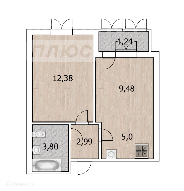 Общая площадь 33.2 м2