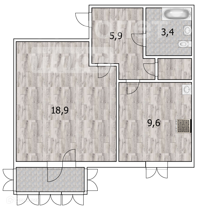 Общая площадь 37.8 м2