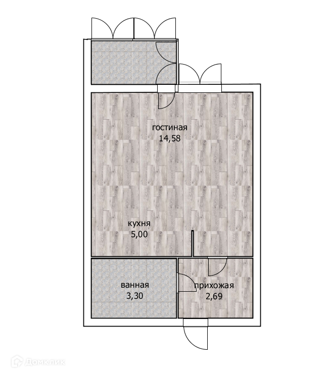 Общая площадь 26.5 м2