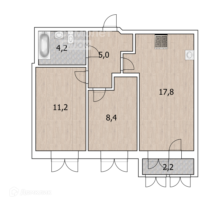 Общая площадь 46.6 м2