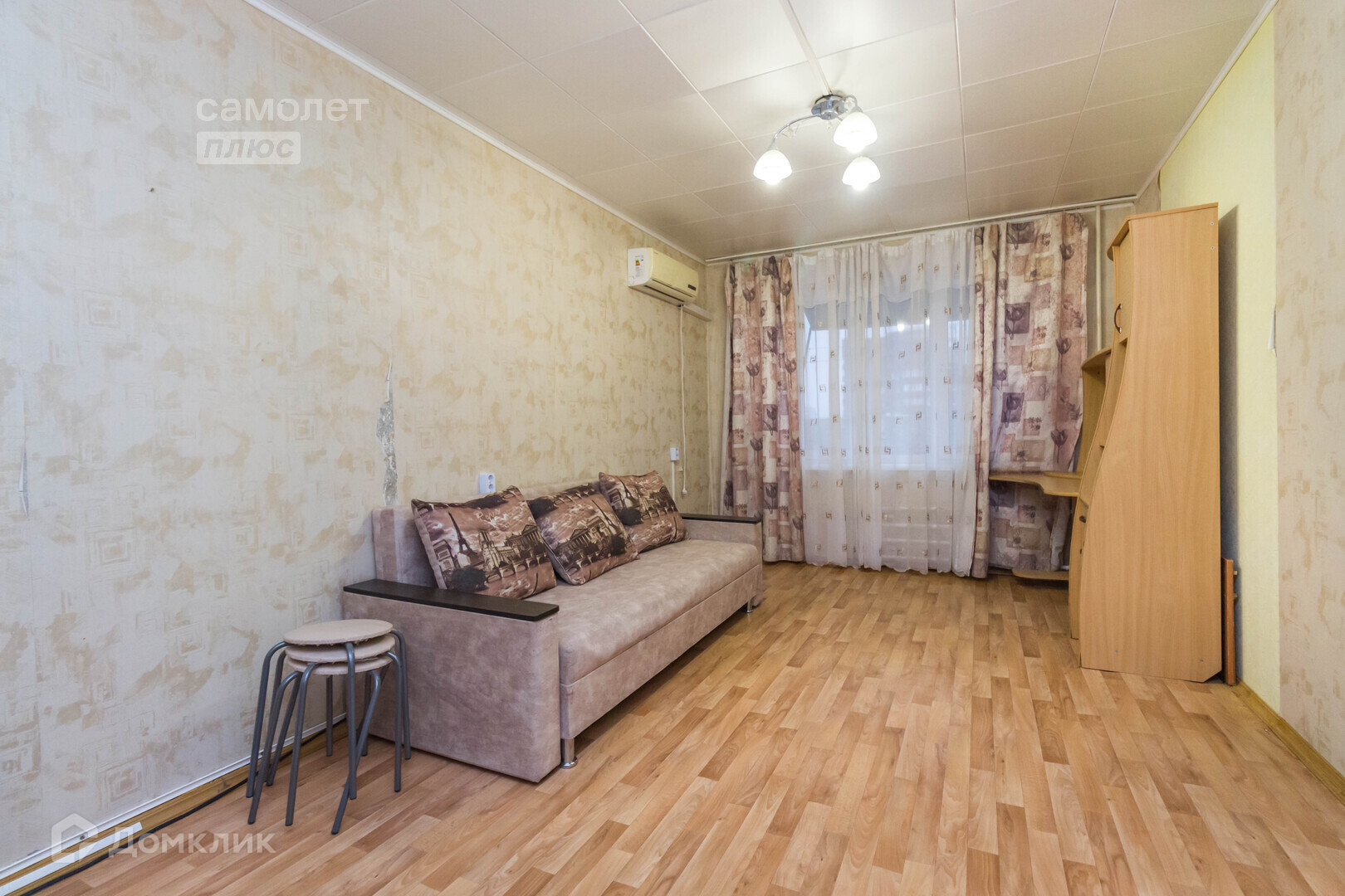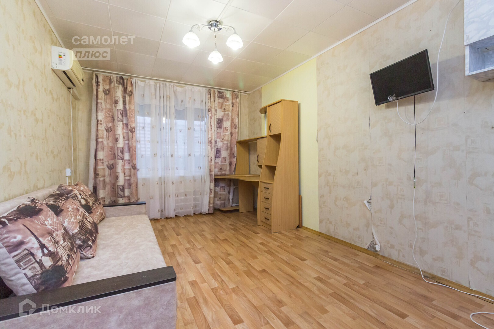 Остается вся мебель и техника, имеется кондиционер. В пешей доступности садик, современная школа.