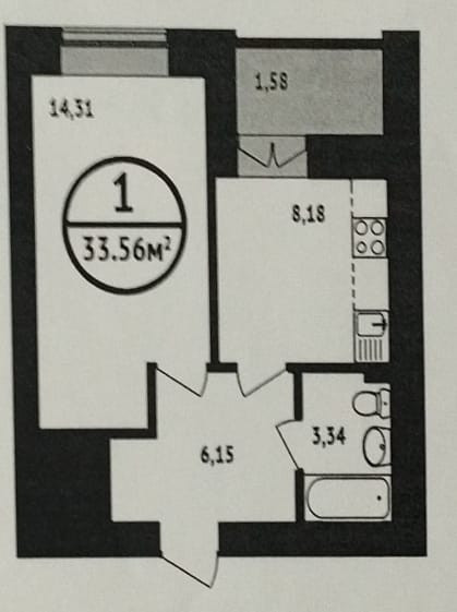 Общая площадь 33.8 м2