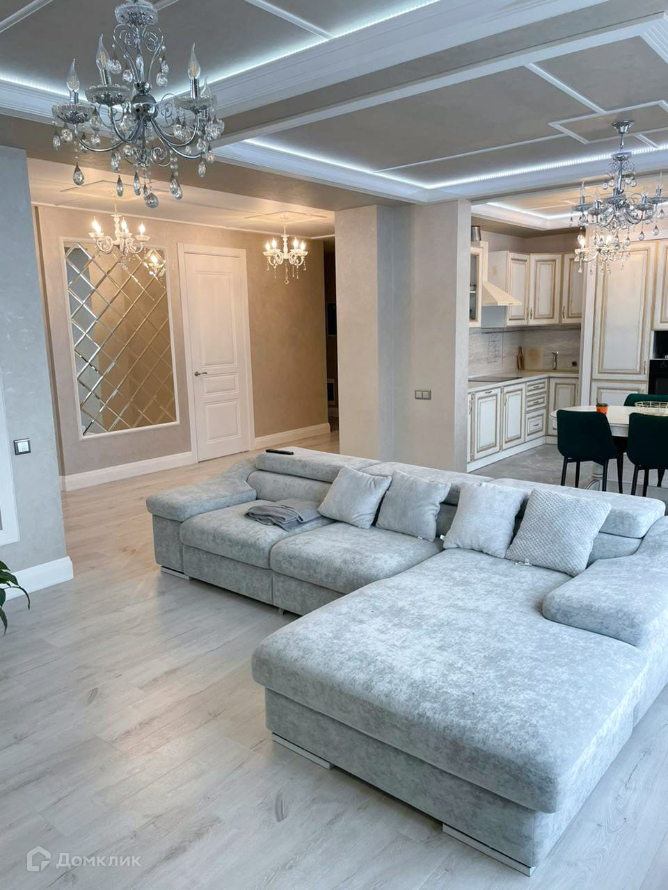 На полу качественный ламинат, керамическая плитка. Теплые полы во всей квартире.