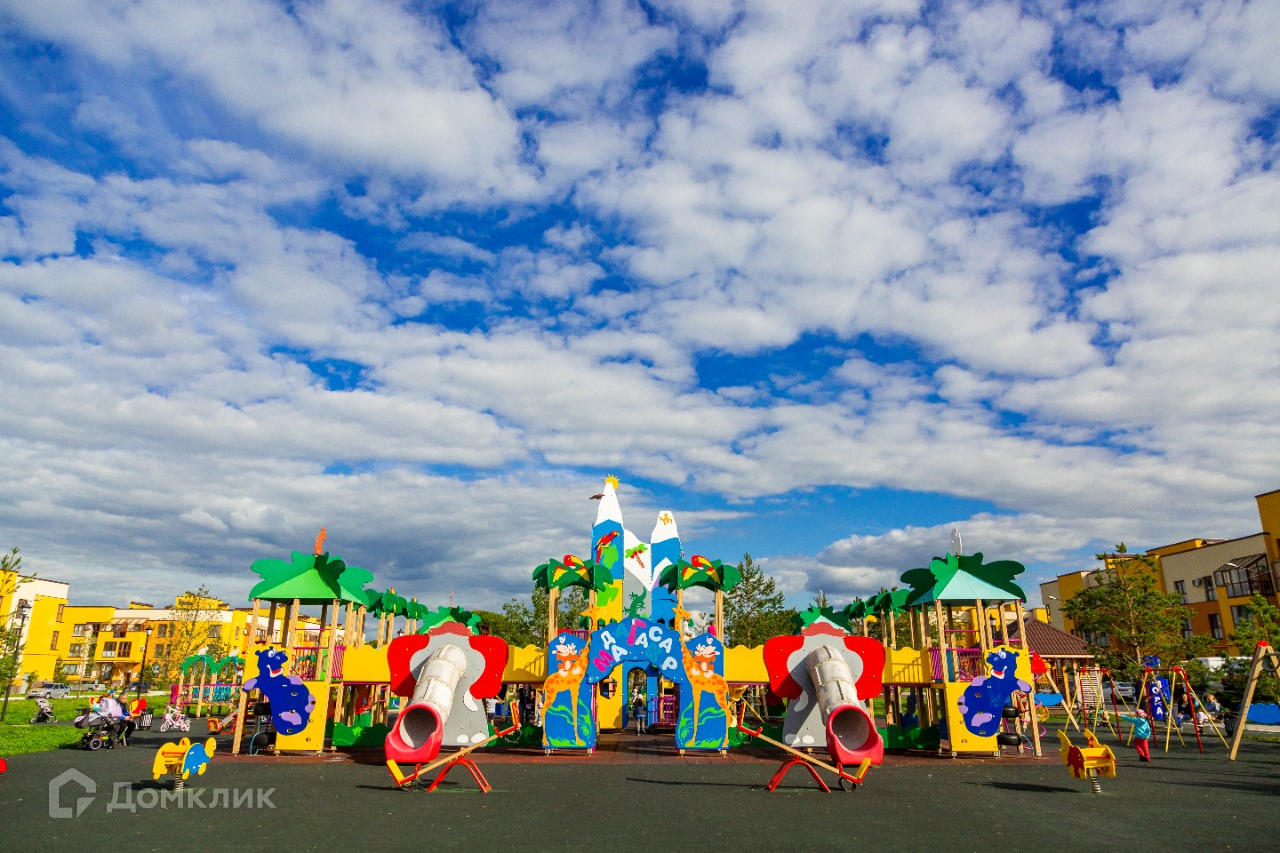 Огороженная территория жилого комплекса, въезд через шлагбаум, большая детская площадка, остановка общественного транспорта, скейт-парк, круглосуточное видеонаблюдения и охрана.