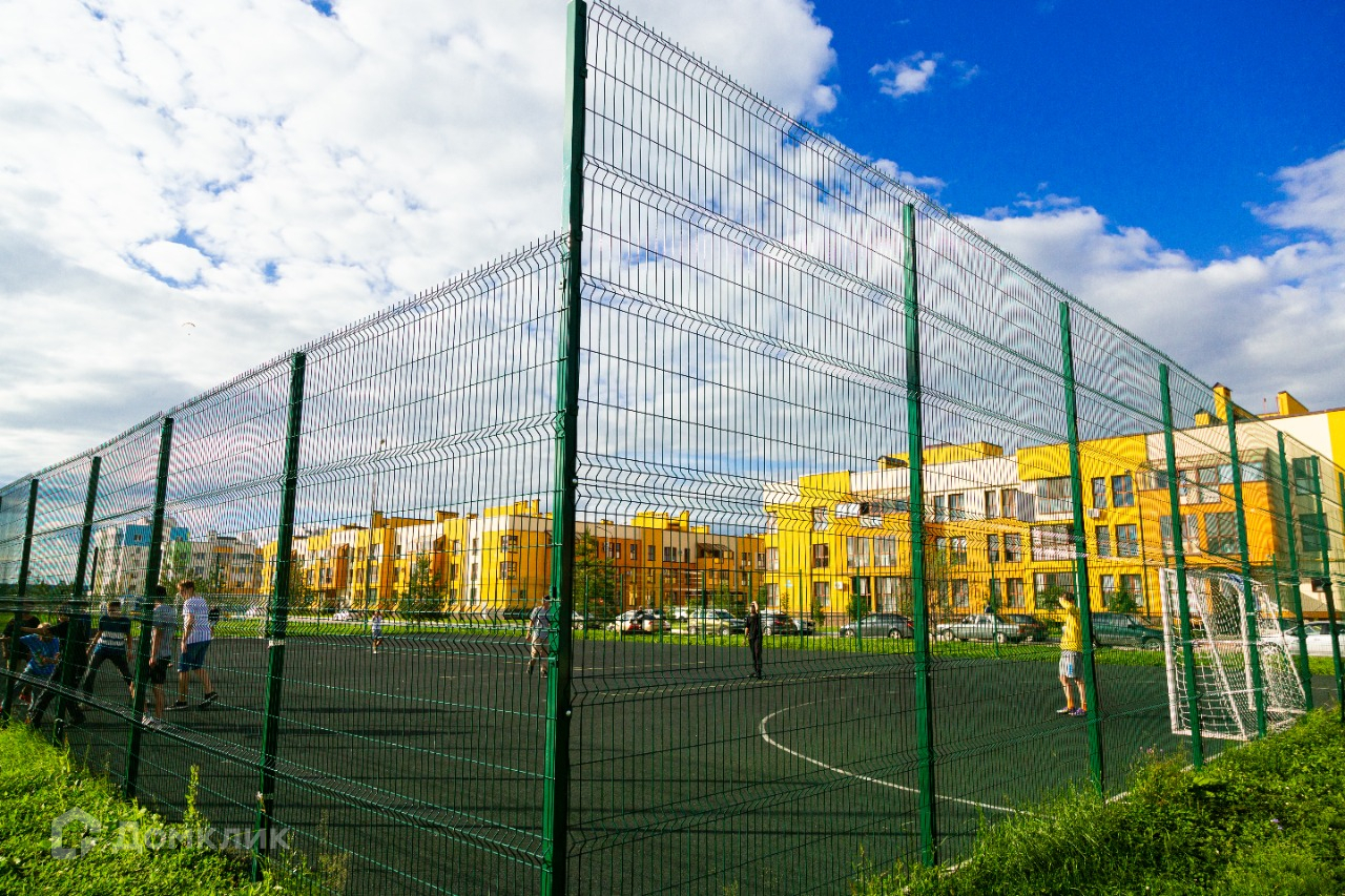 На территории зимой бесплатный ледовый каток, летом футбольная, волейбольная, баскетбольный площадки.
