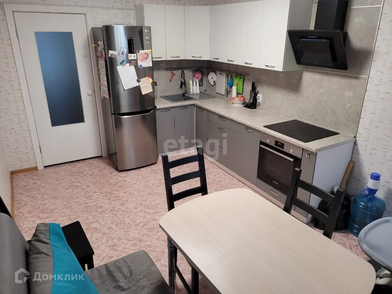 Остаются кухонный гарнитур без техники, встроенный шкаф, остальная мебель по договоренности.