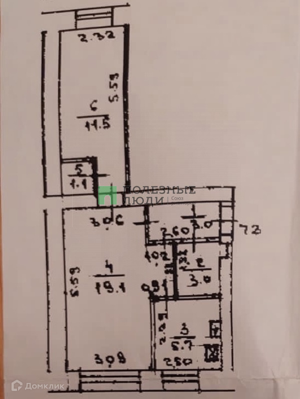 Жилая площадь 30.6 м2