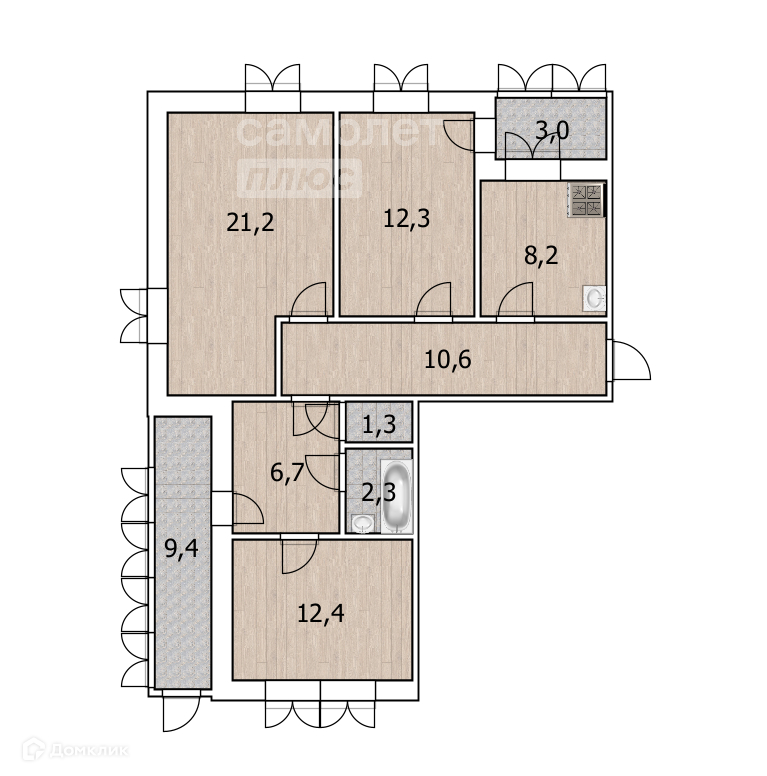Трехкомнатная квартира, расположенная по адресу: переулок Запорожский, д. 7 5/9 этажность. Общая площадь 75,1 м2.