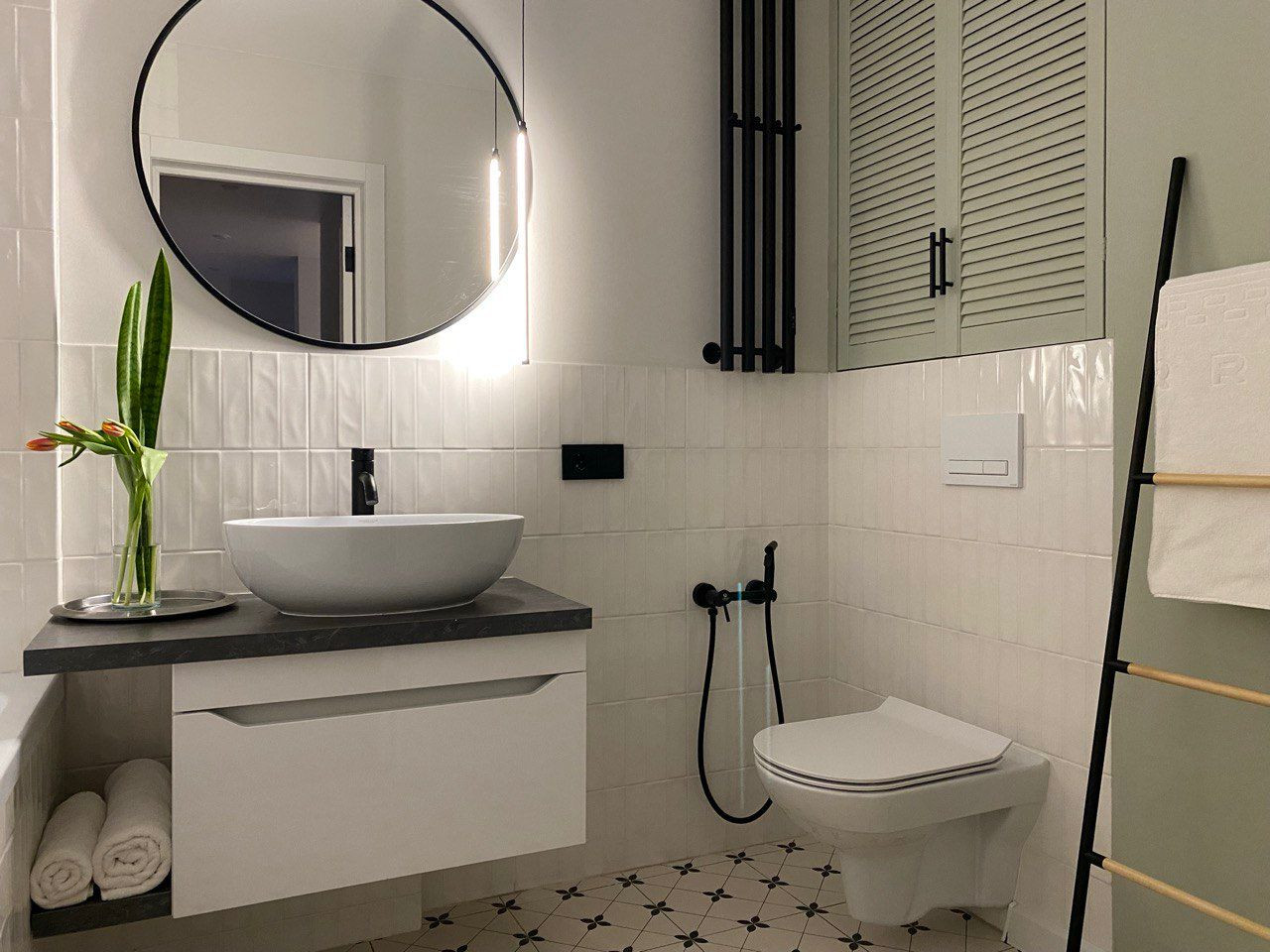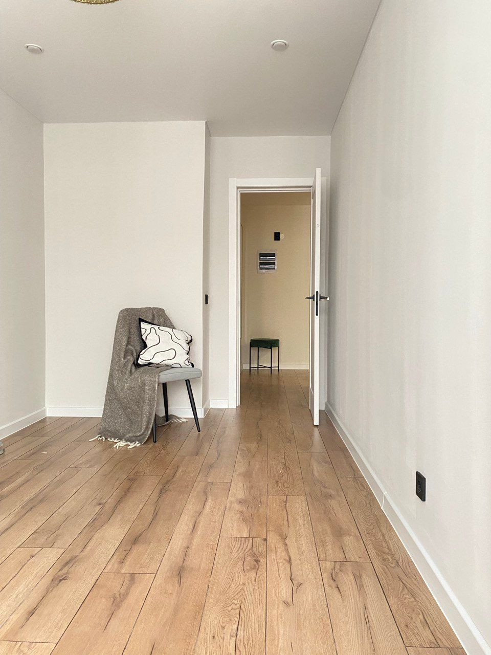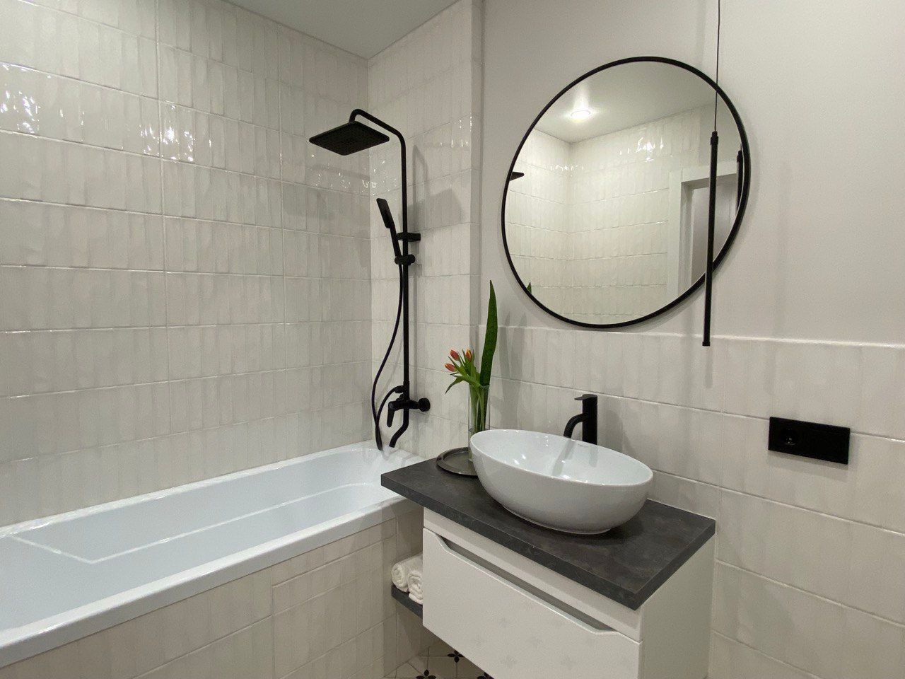 Ремонт выполнен из современных качественных материалов: потолок натяжной, на стенах обои под покраску, на полу ламинат, в санузле керамическая плитка и теплый пол, на лоджии ковролин. Пространство отличается грамотной функциональной планировкой и уютным гармоничным дизайном. Реализованы разные сценарии освещения.