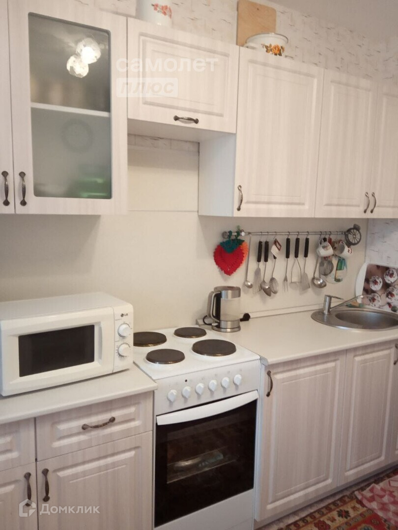 Из мебели остается вместительный шкаф купе, кухонный гарнитур.
