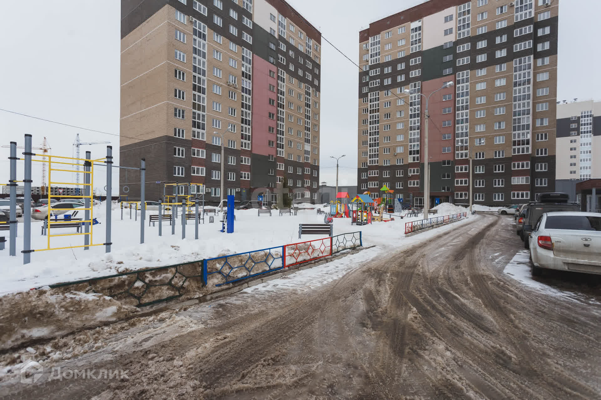 Благоустройство прилегающей территории включает в себя организацию детских и спортивных площадок, зон отдыха и озеленение. Очень много парковочных мест для жителей комплекса.