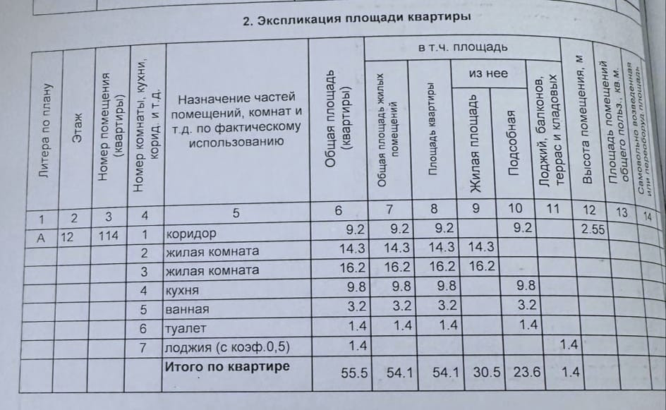 Oбщая площадь 55,5