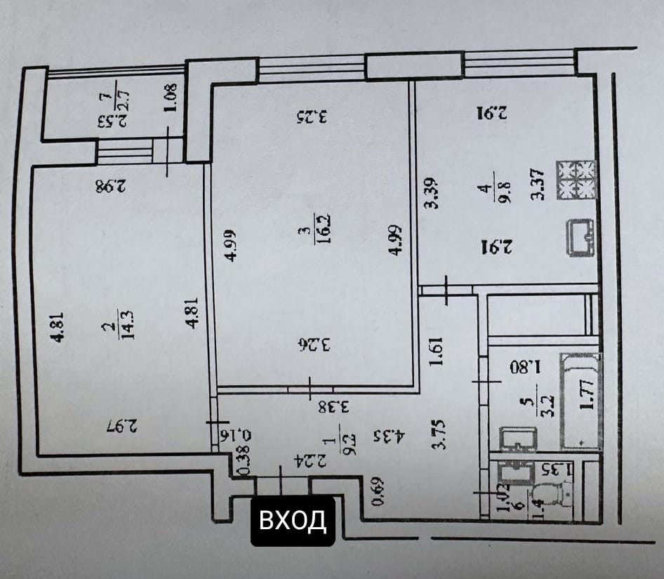 Kомнaта 14,3кв.м
