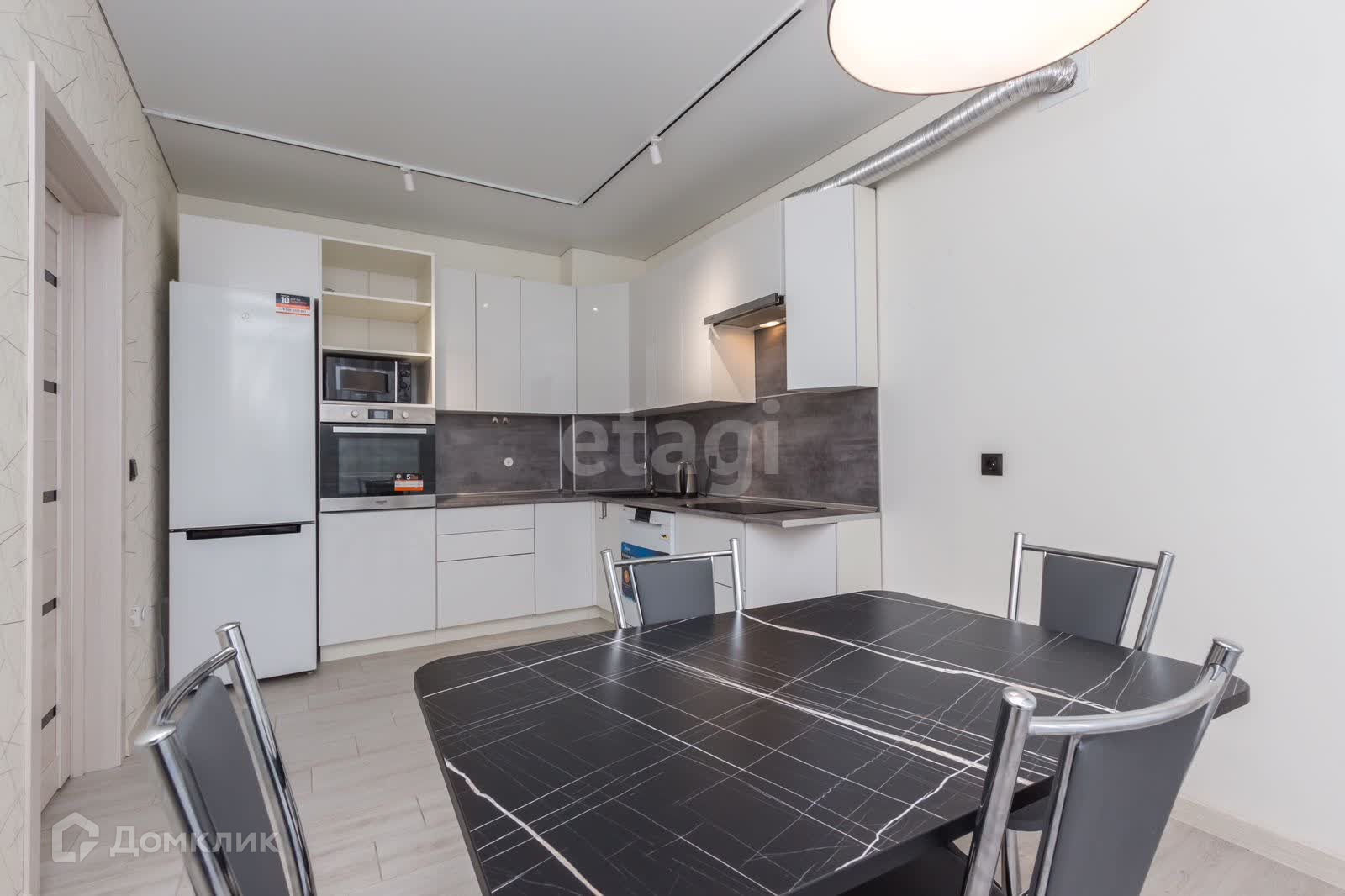 в санузлах плитка, в комнатах на полу паркетная доска, встроенная кухня и техника.