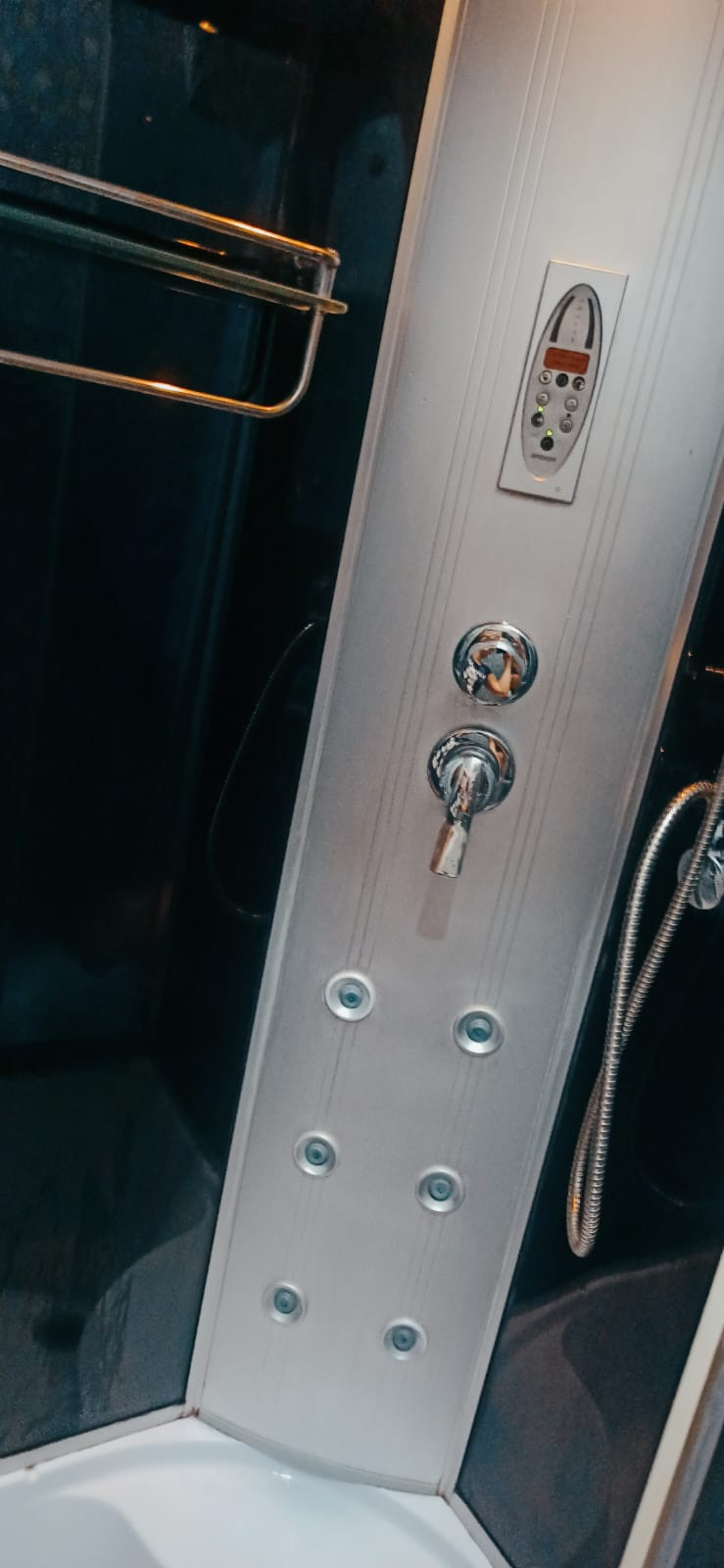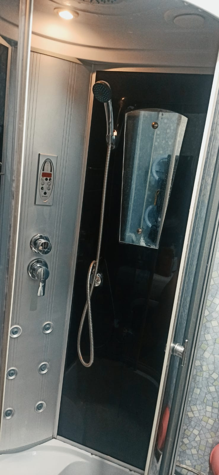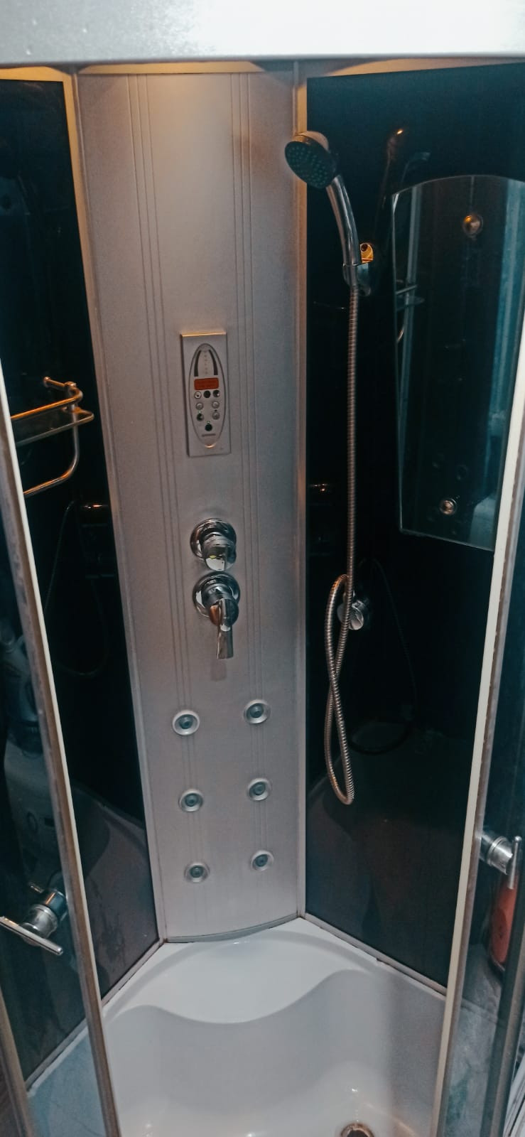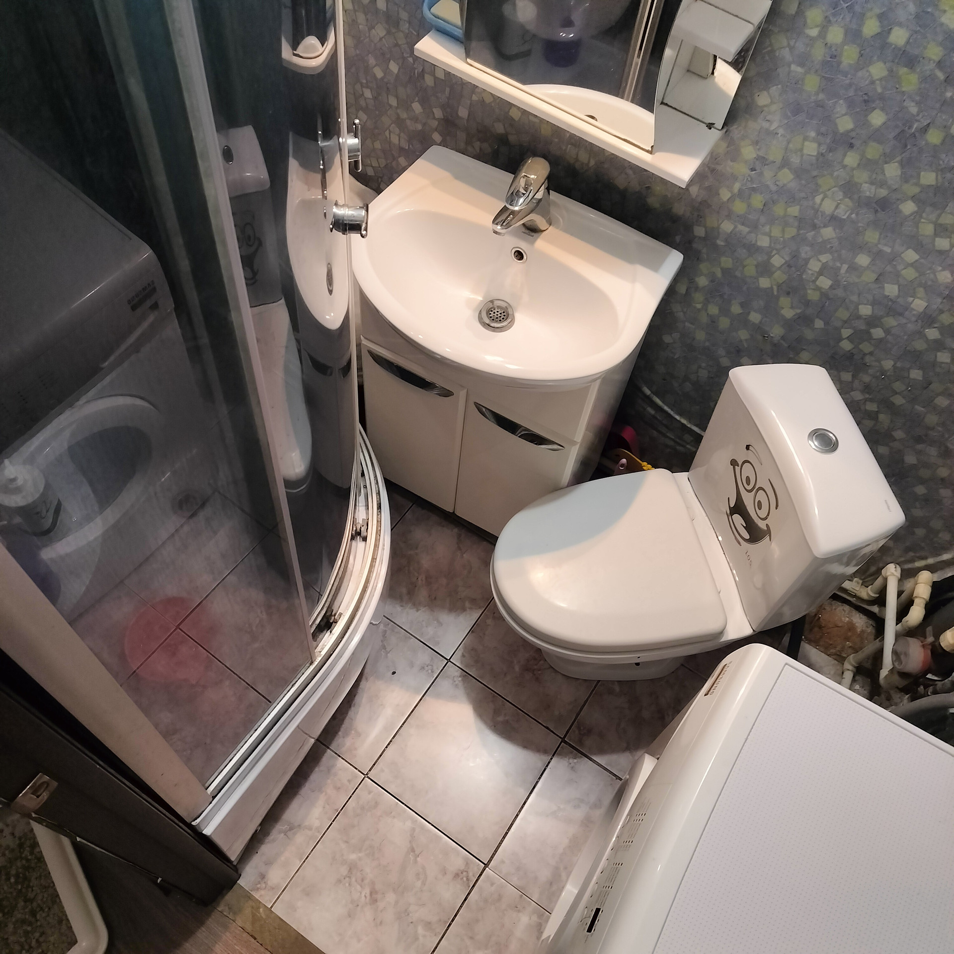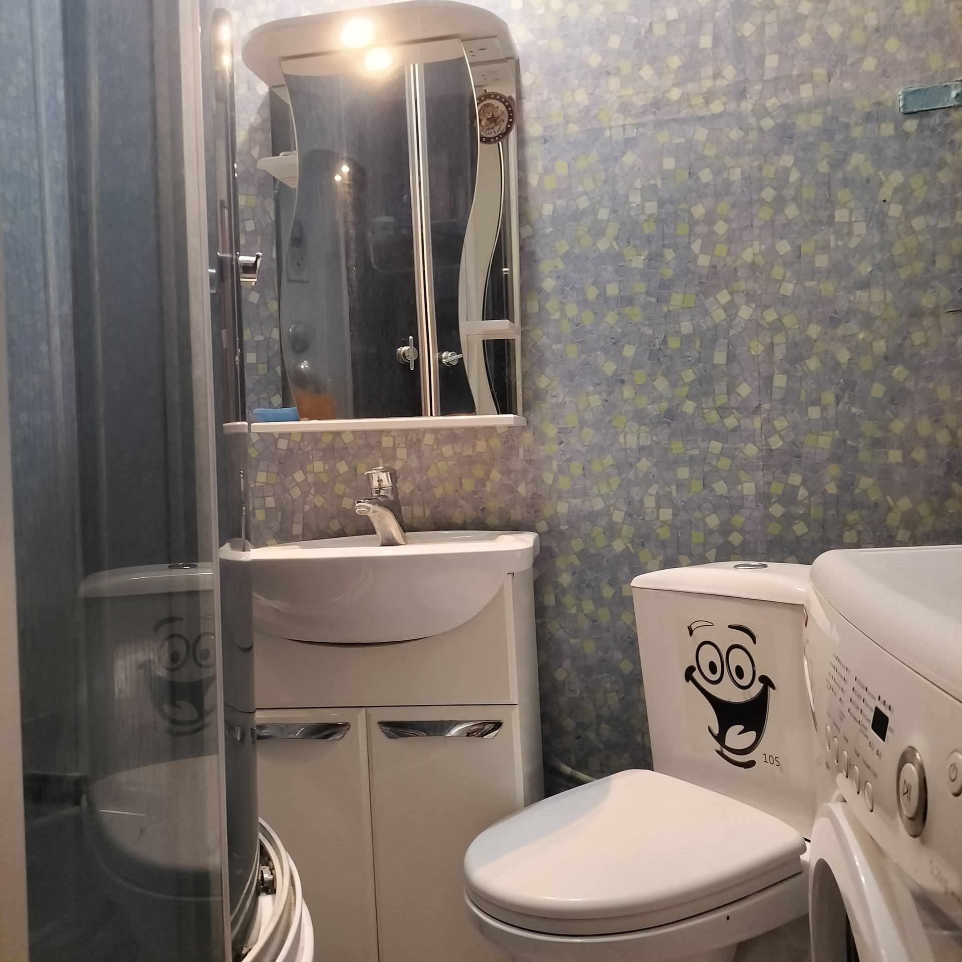 - Совмещенный сан узел, с душевой кабиной,на полу плитка.