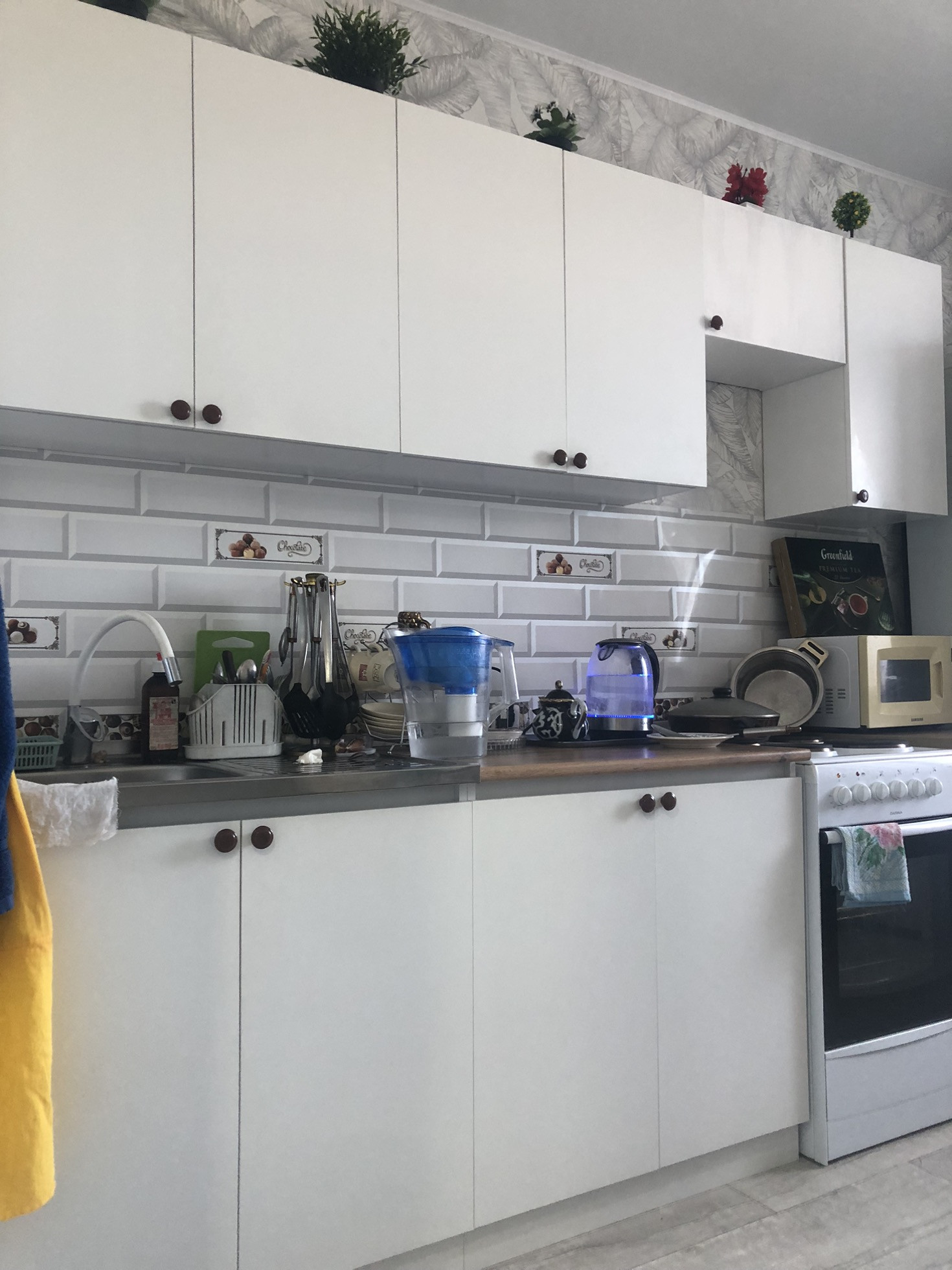 На кухне при продаже остается : встроенный кухонный гарнитур.