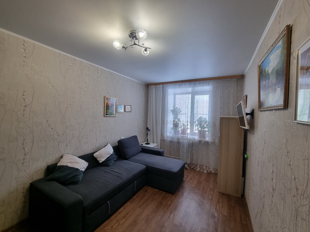 В квартире хорошая чистовая отделка, можно заехать и жить: полы, стены и потолки выровнены, на полу в прихожей и зале ламинат, в сплаьне и на кухне линолеум, санузел полностью отделан кафелем, потолки в основном натяжные матовые. Все окна заменены на пластиковые с 2х камерными стеклопакетами.