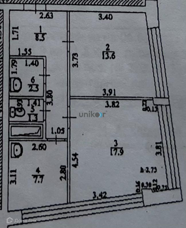 Площадь кухни 7.7 м2