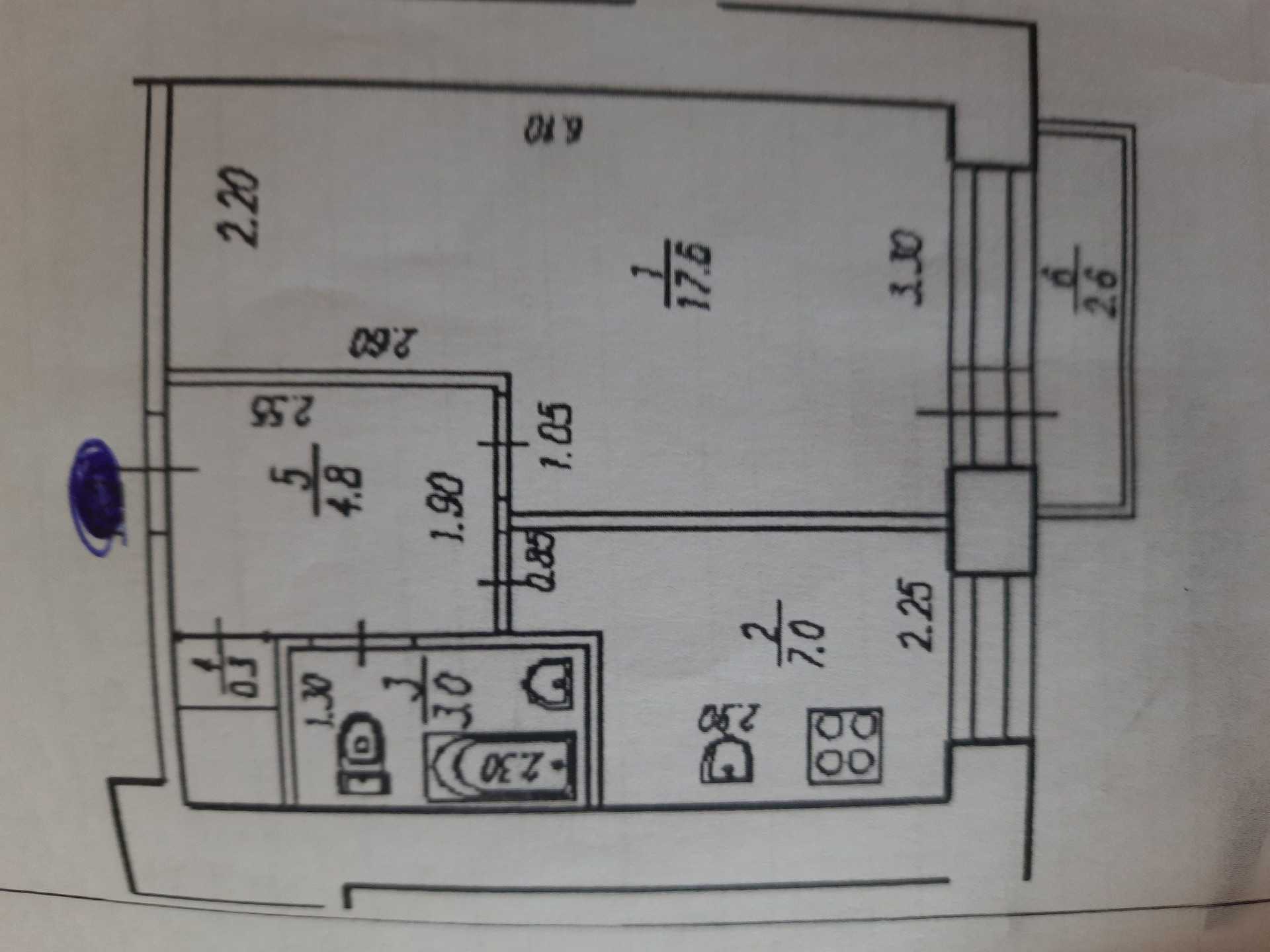 Балкон, лоджия 1 балкон