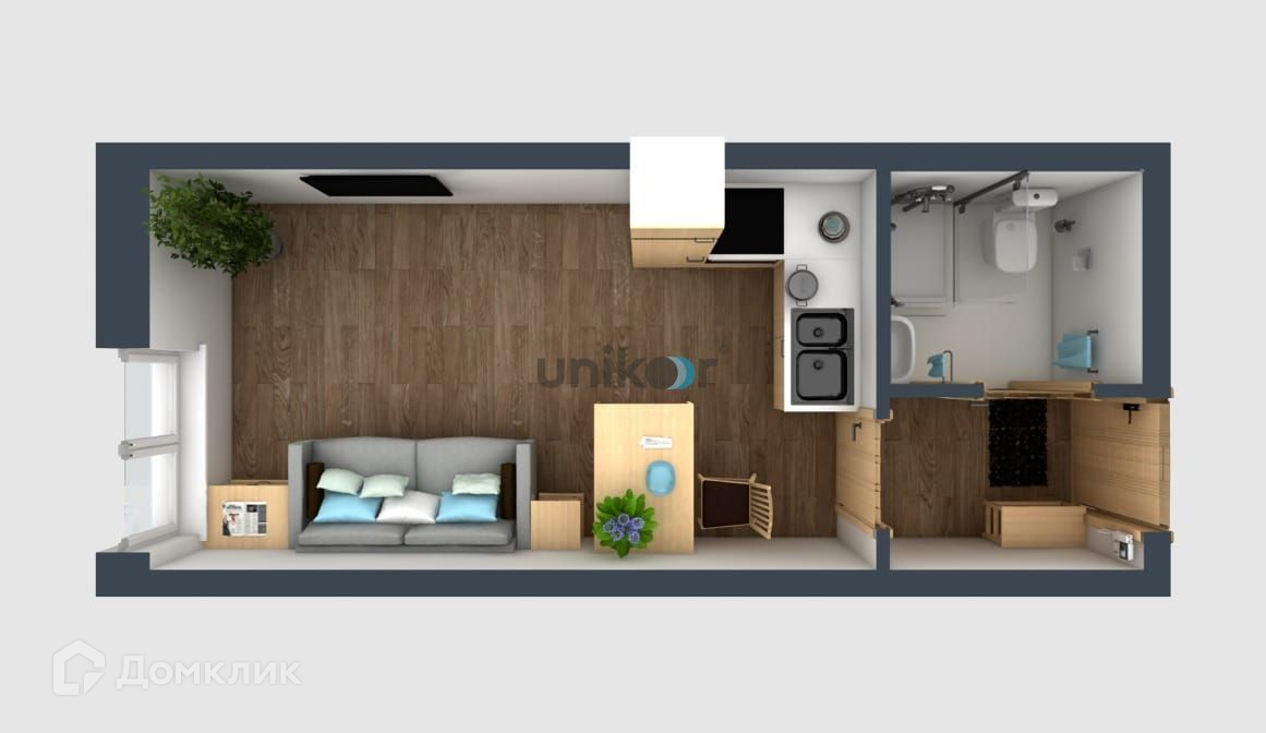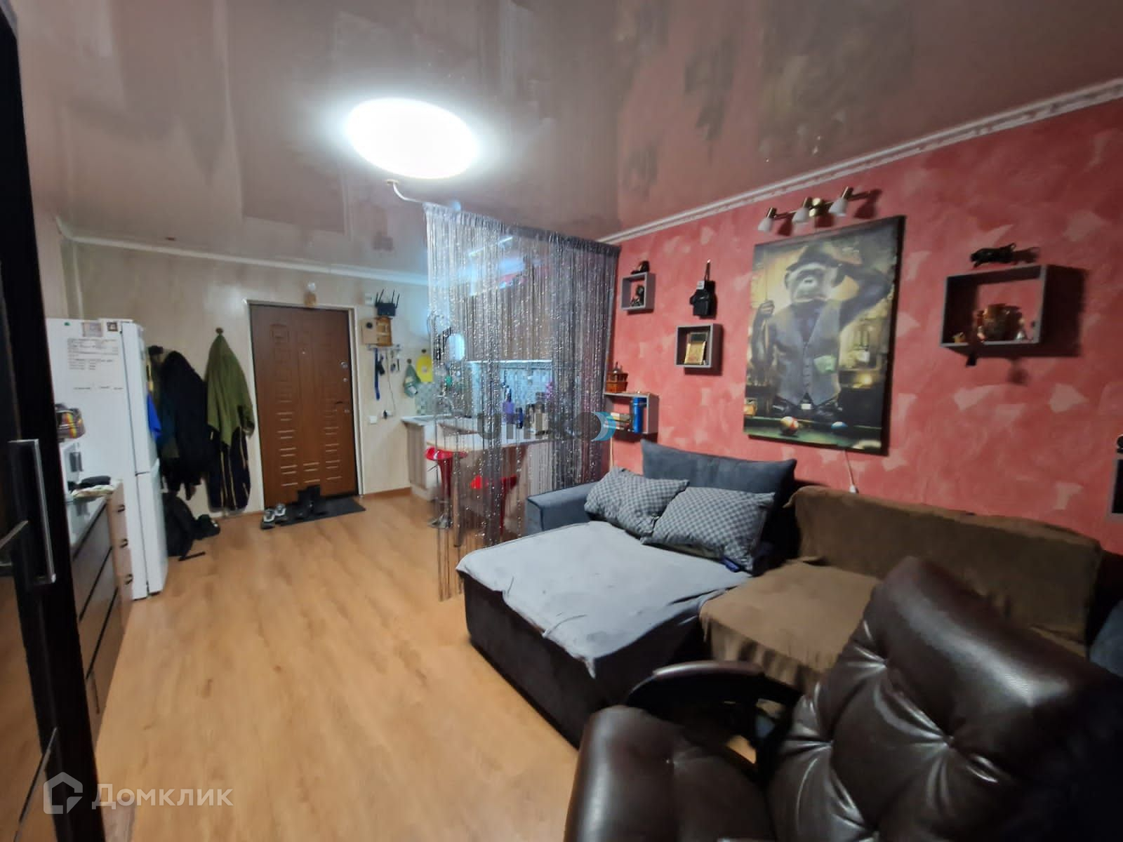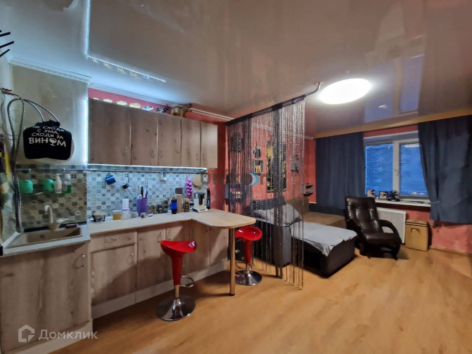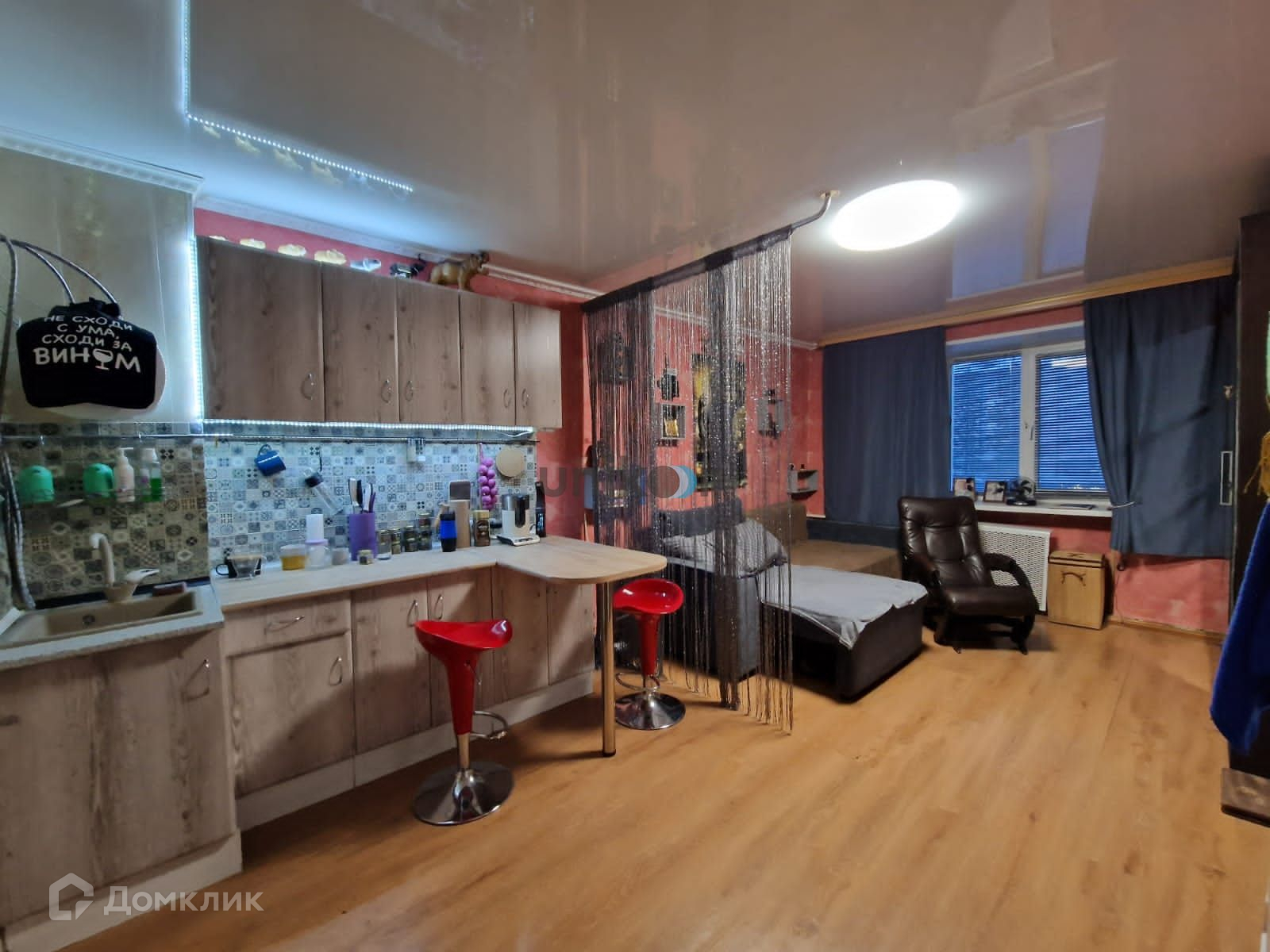 В студии сделан свежий  евроремонт: на полу  высокопрочный ламинат,  натяжные потолки со встроенными светильниками, электропроводка поменена. Новый кухонный гарнитур с электрокерамической  плитой и вытяжкой.