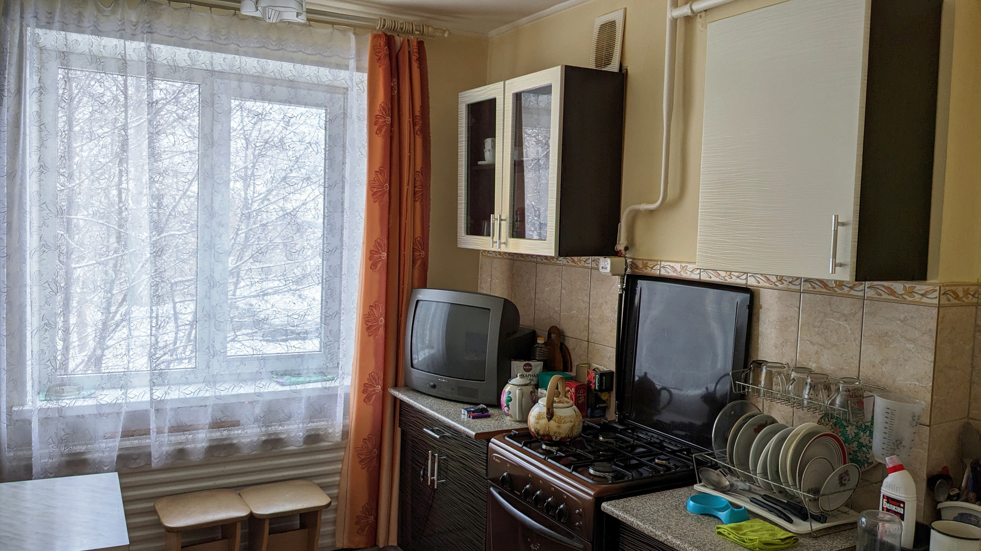 Kваpтиpa расположена на 1 этаже. Окна смотрят во двор. Площадь квартиры - 57,2 кв.м, две смежные жилые комнаты (18,5 + 7,4 кв.м), одна жилая комната (12,8 кв.м) изолированная, кухня - 9,3 кв.м. Высота потолка 2,5. Сан узел раздельный. Квартира в среднем жилом состоянии.