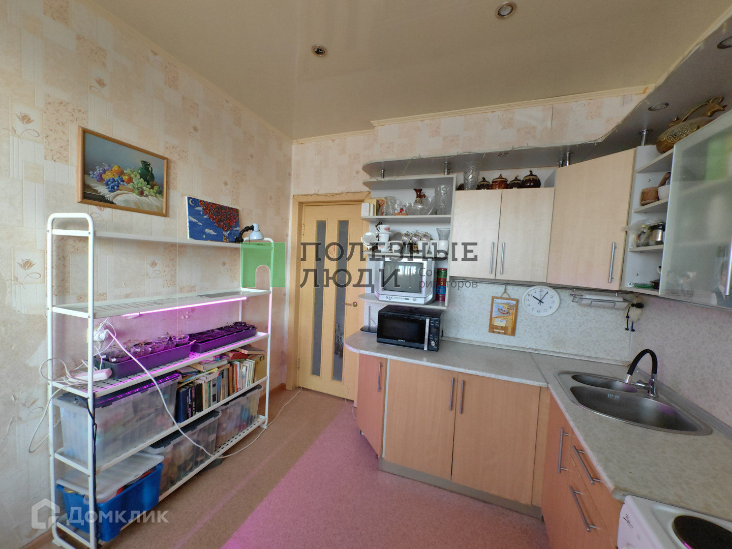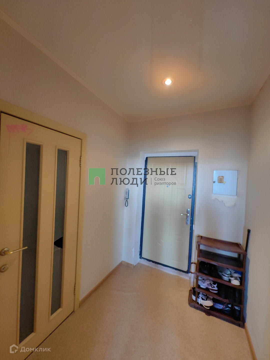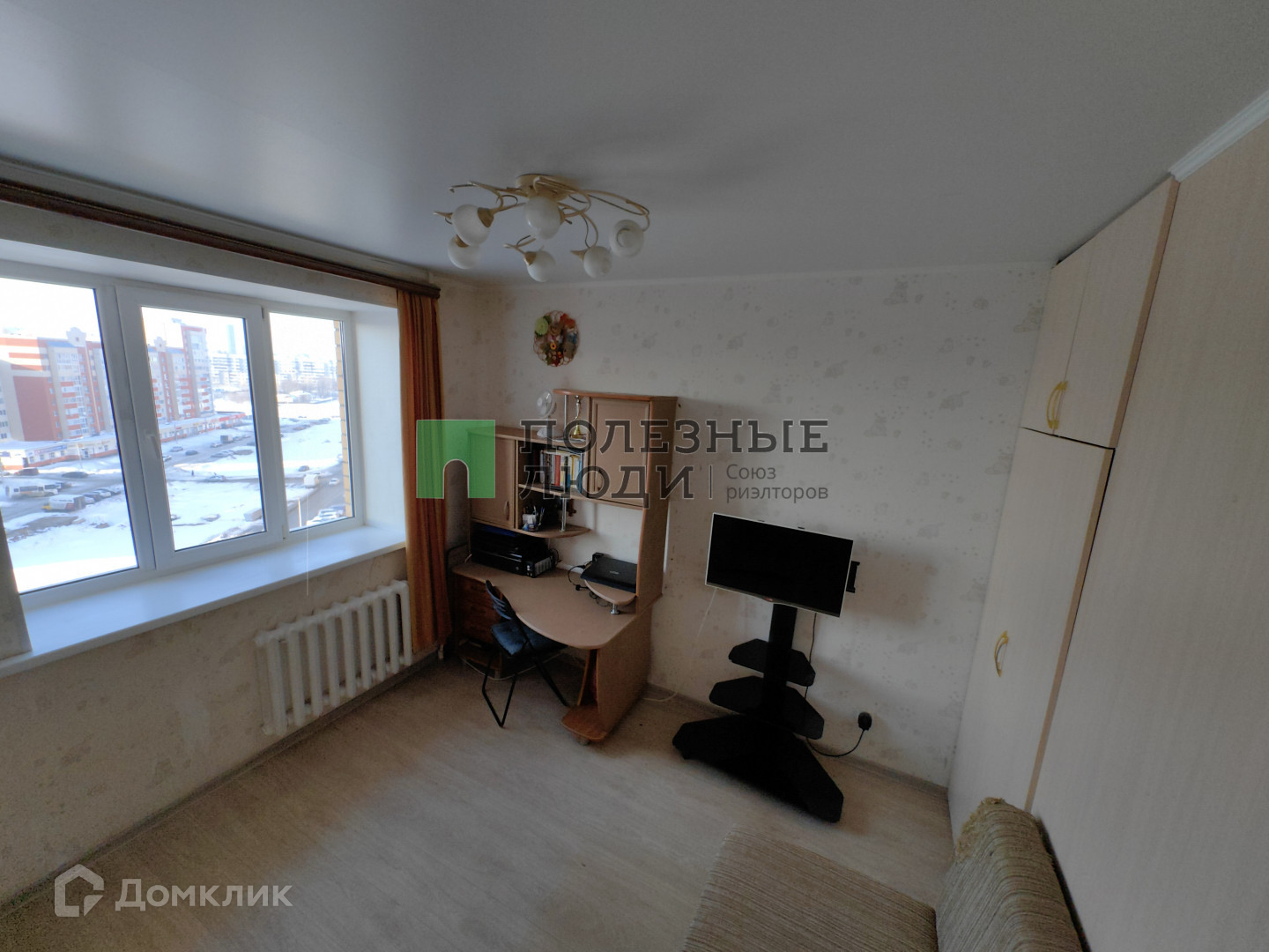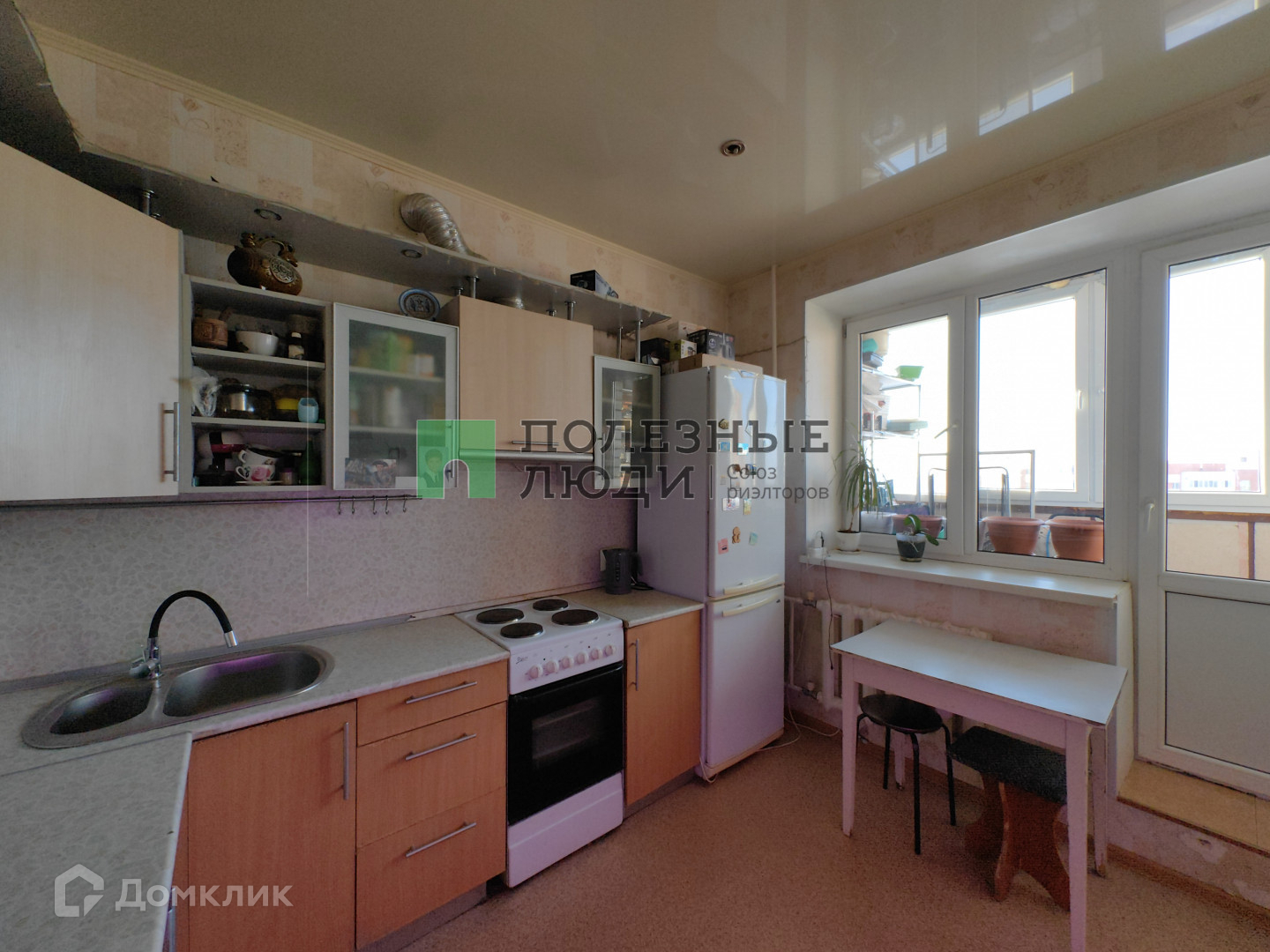 В квартире обычный ремонт: натяжные потолки, стены выровнены, наклеены красивые обои, на полу линолеум. Входная дверь металлическая, все окна пластиковые, лоджия застеклена. Бесшумные и скоростные лифты.